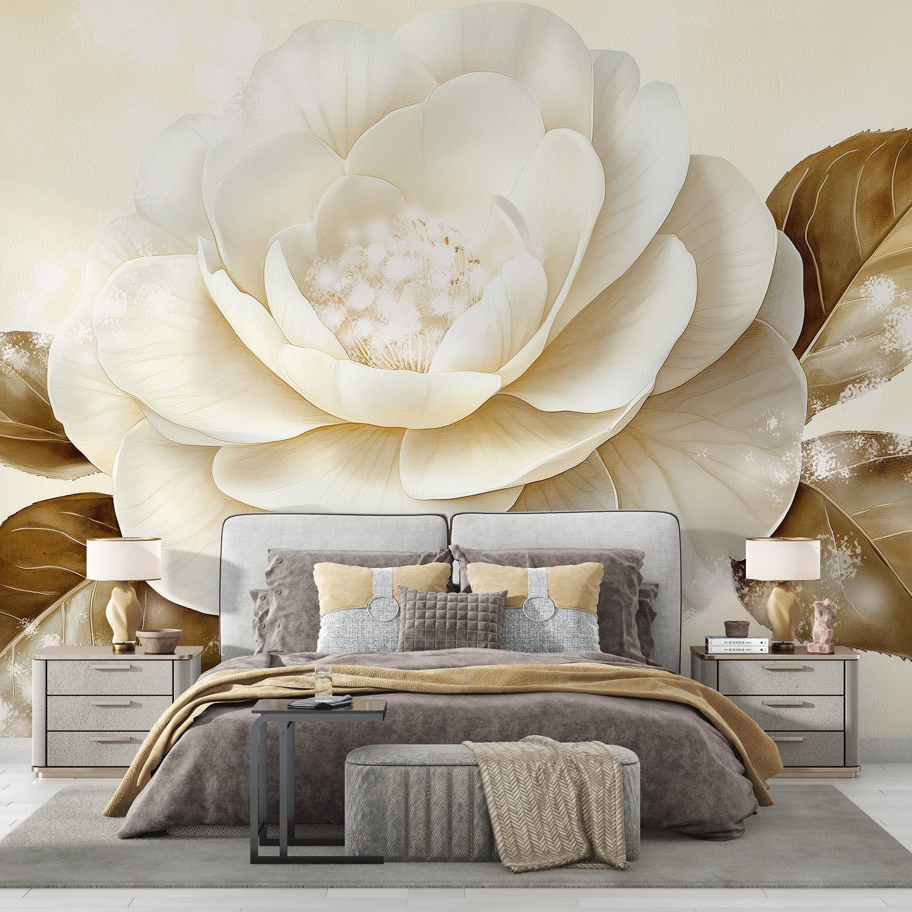Premeňte svoj priestor pomocou tejto úžasnej nástennej maľby s krásnym bielym kvetom v kombinácii s teplými hnedými listami. Predstavte si, že vstúpite do miestnosti, v ktorej vás privíta toto umelecké dielo a naplní ju pocitom pokoja a pôvabu prírody. Mäkké odtiene a jemné detaily priťahujú pohľad, takže je ideálny do útulnej obývačky alebo pokojnej spálne. Návštevníci sa možno zastavia, aby obdivovali jeho krásu, a možno ich dokonca inšpiruje k odpočinku s dobrou knihou v blízkosti. Je to ako preniesť kúsok vonkajšieho prostredia dovnútra – bez peľu. Jednoduchá zmena, ktorá vyvoláva radosť, nemyslíte?