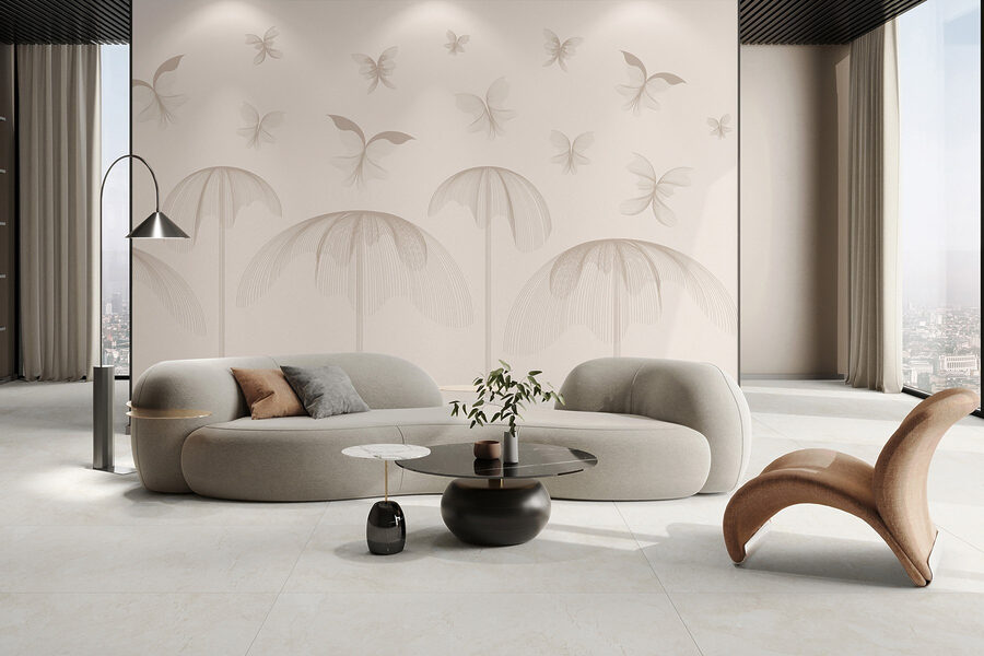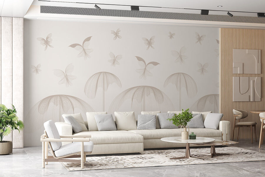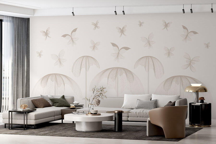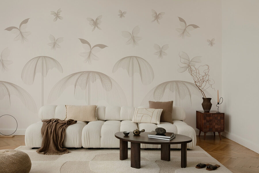 Vneste do svojho priestoru závan čerstvého vzduchu s touto očarujúcou nástennou maľbou s motýľmi poletujúcimi uprostred jemných kvetov. Predstavte si, že pri každom vstupe do miestnosti vstúpite do pokojnej záhrady. Jemne víriace vzory a tlmené odtiene vytvárajú pokojné pozadie, ktoré nabáda k pokojným vibráciám. Akoby vám steny šepkali sladké tóny a vyzývali vás k odpočinku. V kombinácii s pohodlným kreslom a dobrou knihou získate dokonalý kútik. Vážne, kto by nechcel popíjať čaj v motýľom raji? Premeňte svoj domov na rozmarné útočisko, ktoré každý deň vyvoláva radosť.