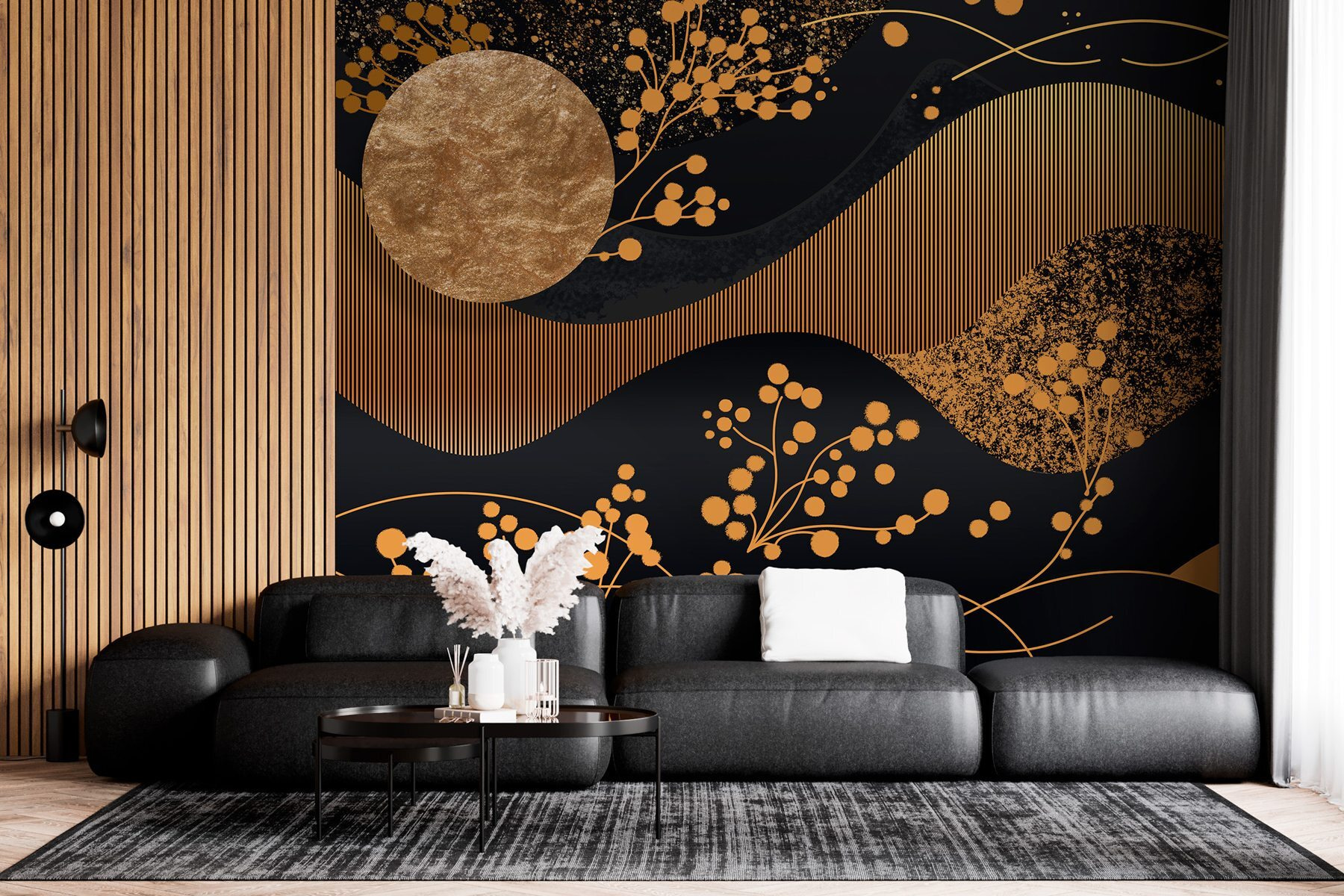 Premeňte akýkoľvek priestor na útulné útočisko pomocou tejto úžasnej nástennej maľby “Elegantné vzory na tmavom plátne”. Predstavte si, že stojíte vo svojej izbe, pretože táto nástenná maľba zachytáva fascinujúci tanec plynulých línií a očarujúcich zhlukov, ktoré len čakajú na rozprúdenie rozhovoru. Hlboké farby navodzujú pokojnú, sofistikovanú atmosféru, ktorá je ideálna na vytvorenie relaxačného zákutia alebo aj temperamentného obývacieho priestoru. Hostia sa môžu ocitnúť priťahovaní jeho vzormi a uvažovať o ich význame – alebo len obdivovať krásu.