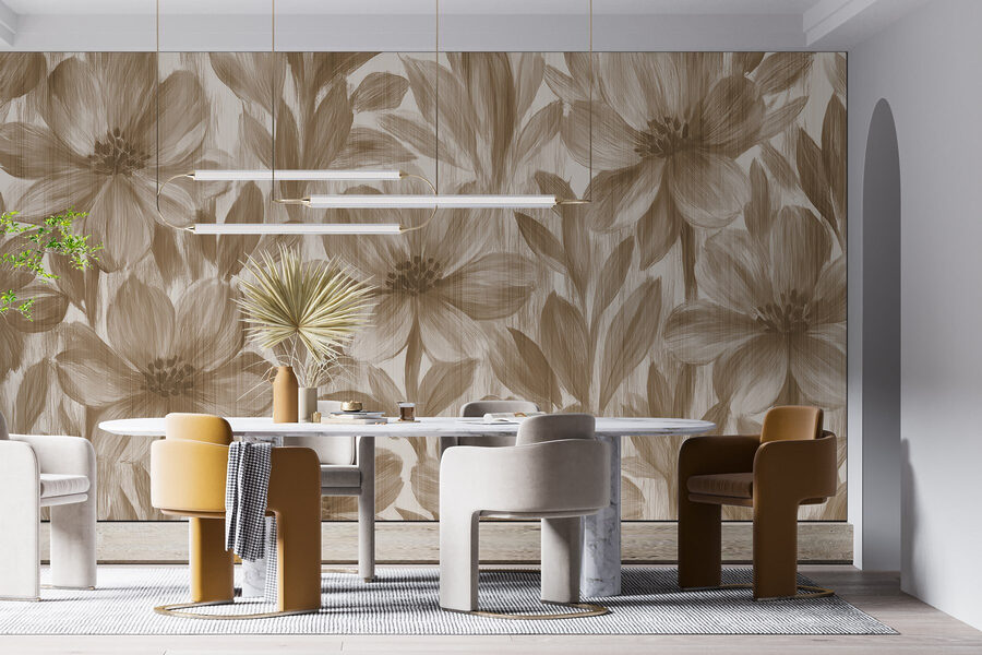 Premeňte akúkoľvek miestnosť na útulné útočisko s týmito úžasnými nástennými maľbami s jemnými kvetinovými vzormi v zemitých tónoch. Predstavte si, že vstúpite do priestoru, kde po stenách tancujú nežné kvety a navodzujú pocit pokoja a tepla. Ideálne do obývačky, spálne alebo aj do malého čitateľského kútika, kde vládne pokoj. Je to ako závan čerstvého vzduchu alebo hrejivé objatie v chladnom dni. Priatelia sa môžu zdržiavať, rozprávať sa o umení a dekoráciách, zatiaľ čo vy sa budete kochať pokojnou atmosférou. Milovníci prírody budú zbožňovať spôsob, akým tieto kvetinové vzory vnášajú do interiéru atmosféru, ktorá pôsobí živo a zároveň upokojujúco. Smelo do toho, nechajte tieto krásne kvety rozkvitnúť vo svojom domove.