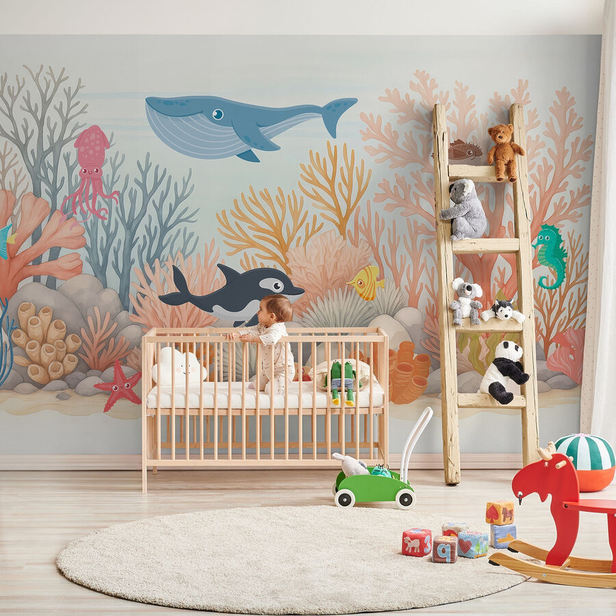 Ponorte sa do živého podmorského sveta s touto nádhernou fototapetou s hravými rybami a rozmarnými koralmi. Predstavte si, ako sa detská izba premení na živú oceánsku scénu a každý deň prenesie najmenších na čarovnú pláž. Je to ako preniesť si kúsok morského pobrežia do interiéru – bez piesku v prstoch! Rodičia ocenia, ako podnecuje predstavivosť a zvedavosť, zatiaľ čo deti budú milovať pozorovanie farebných morských tvorov. Je ideálny na doplnenie zábavy do detských izieb alebo škôlok a je radostnou pripomienkou toho, že každý deň sa môže cítiť ako plážové dobrodružstvo. Jednoducho očarujúce!