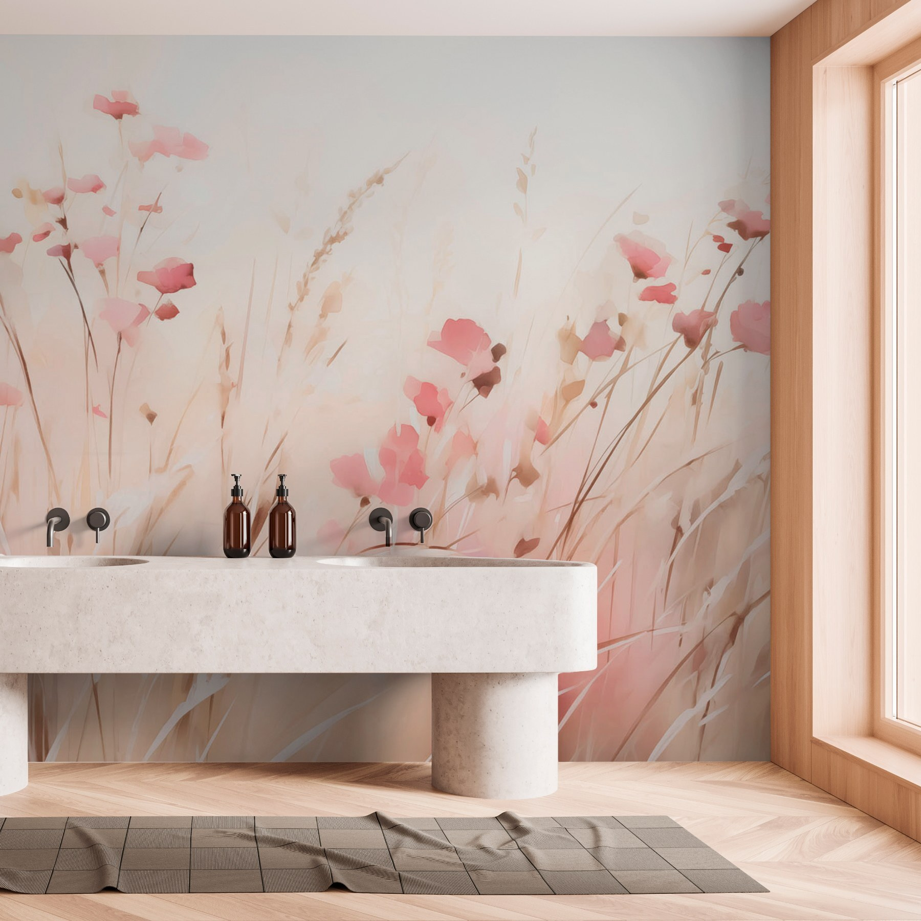 Premeňte akúkoľvek stenu na pokojné útočisko pomocou nástennej maľby “Pole ružových kvetov”. Je to ako prechádzka po zasnenej jarnej lúke bez peľu! Tento jemný akvarelový dizajn prináša jemný nádych rozmarnosti a tepla, takže je ideálny pre útulný čitateľský kútik alebo svetlé foyer. Predstavte si, že popíjate rannú kávu pred touto krásou – je to osviežujúcejšie ako prechádzka v parku, však? Jemné odtiene sa bez námahy kombinujú s akýmkoľvek interiérom a dodajú vášmu priestoru to správne kúzlo bez námahy. Nie je to len nástenná maľba, je to malý kúsok prírody, ktorý pozýva do každodenného života pokoj a kreativitu.