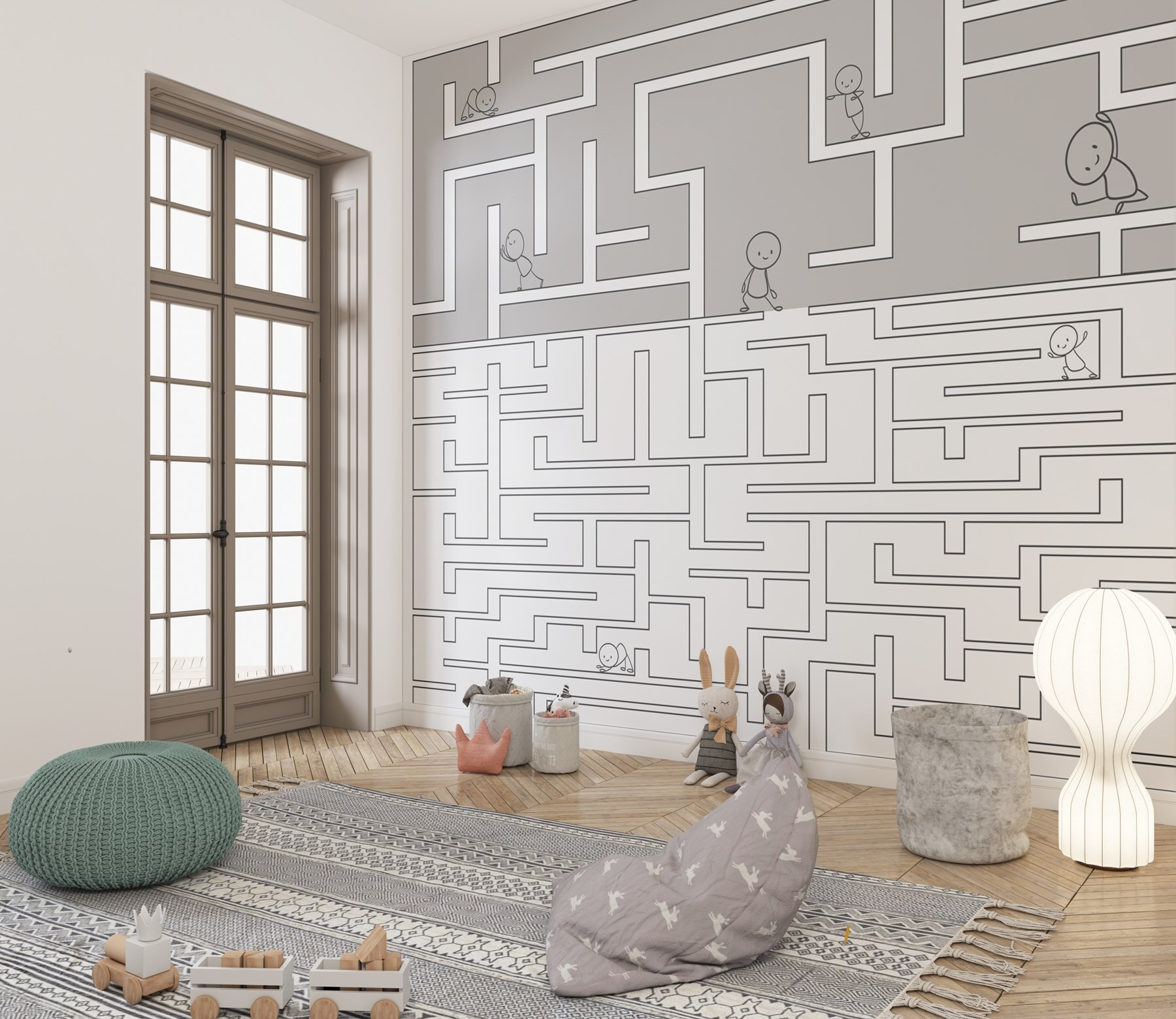 Premeňte akúkoľvek miestnosť na hravé dobrodružstvo s touto rozmarnou fototapetou s bludiskom a veselými kreslenými postavičkami, ktoré sa v ňom pohybujú. Predstavte si deti, ako sa smejú a ukazujú, keď sledujú drobné postavičky na ich malých cestách. Vyzýva k nápaditej hre a udržiava ich mysle v napätí zvedavosti, takže je ideálna do spální alebo herní. Sledovanie malých detí, ako sa venujú nástennej maľbe, podnecuje kreativitu a dokonca aj trochu priateľského súťaženia. Kto nájde najrýchlejšiu cestu? Nie je to len dekorácia, je to zážitok, ktorý čaká na svoje rozvinutie.