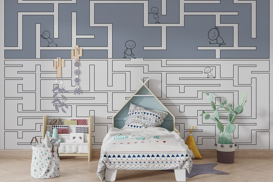 Premeňte svoj priestor pomocou rozmarného kúzla tejto nástennej maľby s rozkošným bludiskom a priateľskými postavičkami, ktoré sa pohybujú po jeho zákrutách. Predstavte si, ako sa deti chichocú, keď objavujú svoje vlastné dobrodružstvo priamo na stenách! Je to ako oživiť rozprávkovú knihu – podnecuje predstavivosť počas hier alebo príjemných čitateľských popoludní. Jemné farby vytvárajú upokojujúcu atmosféru, ktorá je ideálna do spální alebo herní. Navyše je to skvelý začiatok rozhovoru pre návštevníkov, ktorí sa možno radi pokúsia bludisko sami vyriešiť. Kto by povedal, že dekorácia môže byť taká zábavná?