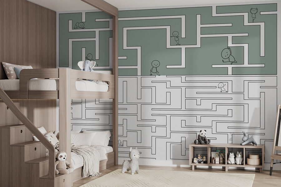 Premeňte detský priestor na hravé dobrodružstvo s touto rozmarnou fototapetou s bludiskom a veselými kreslenými postavičkami. Predstavte si, ako malé deti dychtivo sledujú prstami cestičky a predstierajú, že ich vedú cez rôzne zábavné eskapády. Jemná paleta farieb udržiava pokoj, zatiaľ čo dynamický dizajn bludiska vzbudzuje zvedavosť. Nie je to len dekorácia, je to kulisa pre nápaditú hru a rozprávanie príbehov. Táto nástenná maľba, ktorá je ideálna do spální alebo herní, nabáda k smiechu, tvorivosti a trochu priateľského súťaženia. Sledujte, ako sa deti strácajú v zábave!