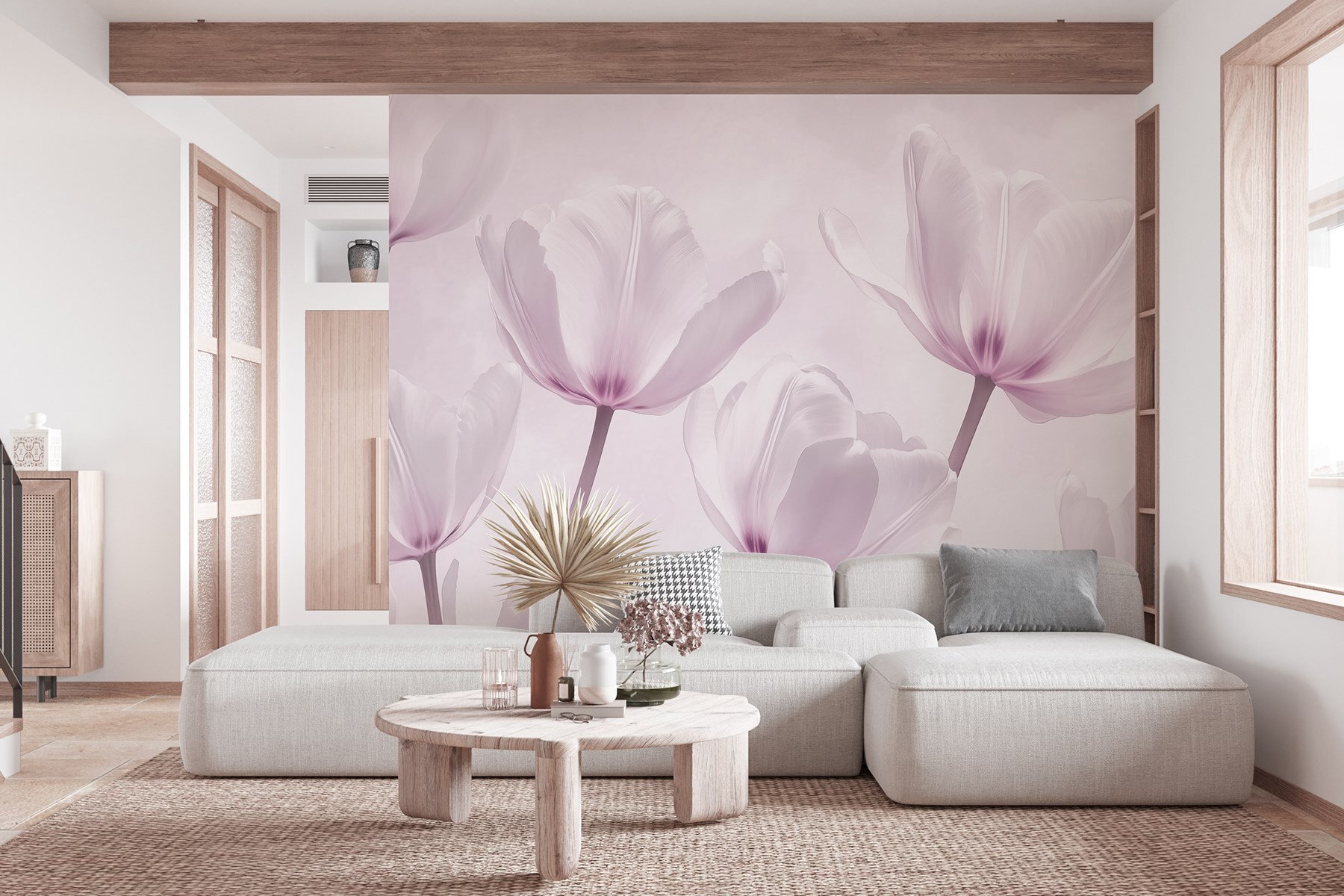 Predstavte si, že vstúpite do miestnosti zaliatej jemnými odtieňmi ružovej a bielej, kde úžasná nástenná maľba s jemnými kvetmi okamžite rozžiari priestor. Tento podmanivý dizajn “Skupina bielych kvetov” pôsobí ako závan čerstvého vzduchu, ktorý bez námahy pozdvihne náladu a vyvolá radosť. Predstavte si ho v útulnom zákutí alebo nad krásnym kreslom na čítanie, ktoré pozýva na lenivé popoludnia plné snenia. Nežná krása týchto kvetov dodáva interiéru nádych prírody a vytvára pokojné útočisko bez potreby zalievania. Je ťažké neusmievať sa! Či už je slnečné ráno alebo daždivé popoludnie, táto nástenná maľba prináša nádych rozmarnosti, ktorý je taký osviežujúci. Ideálna pre každého, kto vo svojom živote ocení trochu umenia.