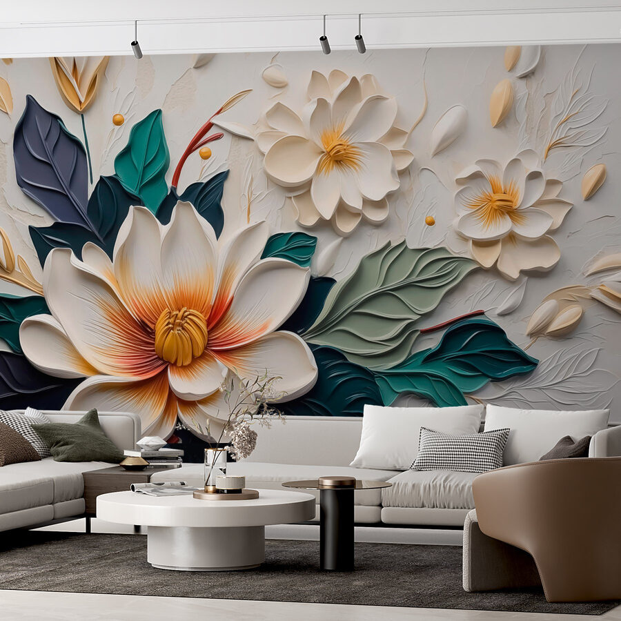Premeňte svoj priestor pomocou tejto krásnej nástennej maľby s bielymi a žltými kvetmi zasadenými medzi svieže zelené listy. Akoby ste si do obývačky preniesli záhradu – bez zalievania. Len si predstavte, ako táto krása rozžiari nudnú stenu a dodá jej sviežu atmosféru, ktorá pôsobí prívetivo a veselo. Priatelia sa budú prechádzať, obdivovať ju a čudovať sa, že ste odhalili tajomstvo zenového života. Detailný dizajn sa jemne hrá s očami, takže je radosť ho skúmať. Perfektne sa hodí do každej miestnosti a do každodenného života vnesie teplo, kreativitu a kvapku radosti. Kto by to nechcel?