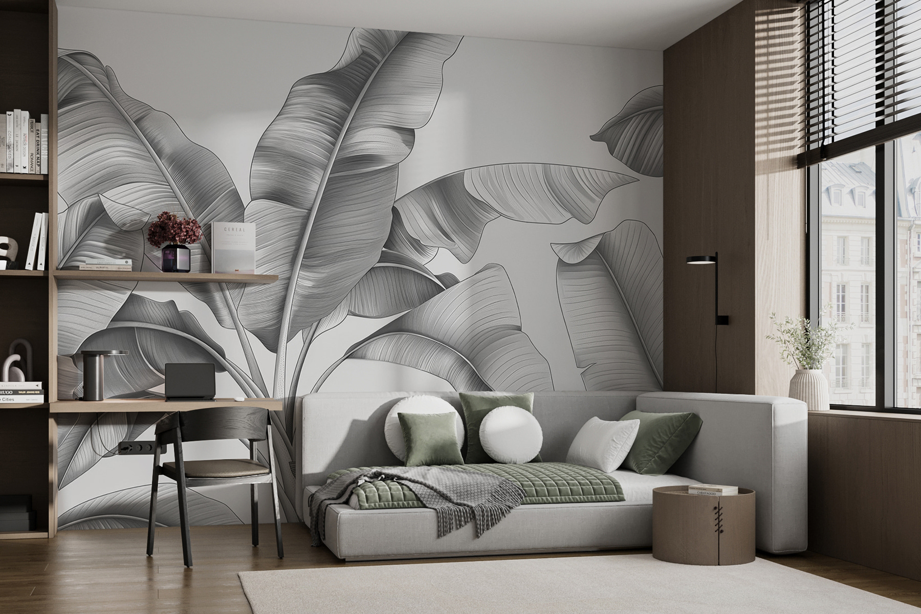 Má chladnú atmosféru šedej farby, vďaka čomu je univerzálny pre takmer akýkoľvek štýl miestnosti – od modernej obývačky až po pokojnú spálňu. Navyše 3D efekt dodáva takú hĺbku, že sa možno pristihnete, ako sa natiahnete, aby ste sa dotkli listov! Vážne, na obklopení lístím je niečo také upokojujúce – samozrejme, bez zalievania a chrobákov.
