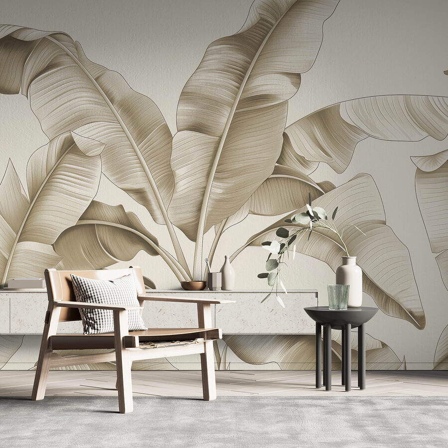 Fototapety Elegantné listy v pokojnej jednofarebnej farbe Fototapety Elegantné listy v pokojnej jednofarebnej farbe