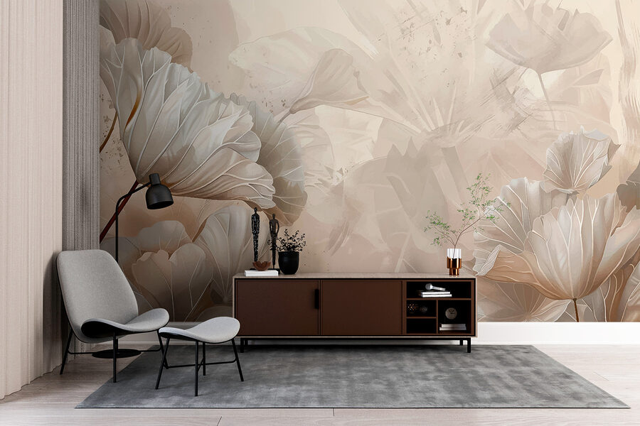 Premeňte nudnú stenu na pokojné útočisko pomocou nástennej maľby “Listy v monochromatickom šepote”. Predstavte si, že vstúpite do pokojného, prírodou inšpirovaného priestoru, kde sa zdá, že jemné, šepkajúce listy jemne poletujú a evokujú tak upokojujúcu atmosféru lesa bez túry. Elegantný dizajn sa bez námahy spája s akýmkoľvek interiérom – je ideálny na vytvorenie útulného čitateľského kútika alebo tichého zákutia na denné snívanie. Možno sa dokonca pristihnete pri tom, že sa natiahnete, aby ste sa dotkli tých nádherne ilustrovaných listov. Je to ako preniesť kúsok pokoja do interiéru – bez chrobákov!