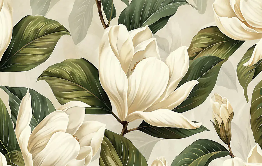 Chcete oživiť tieto obyčajné steny? Nástenné maľby w07901 sa môžu stať vaším novým najlepším priateľom! Predstavte si to: Ohromujúca zmes sviežej zelene a krémových kvetov, ktorá priam kričí sviežosťou a živosťou. Predstavte si, že máte kúsok krásy prírody priamo vo svojej obývačke – alebo možno v spálni, pre tú útulnú, zasnenú atmosféru. Vďaka 3D efektu máte pocit, akoby vám kvety šepkali sladké tóny.