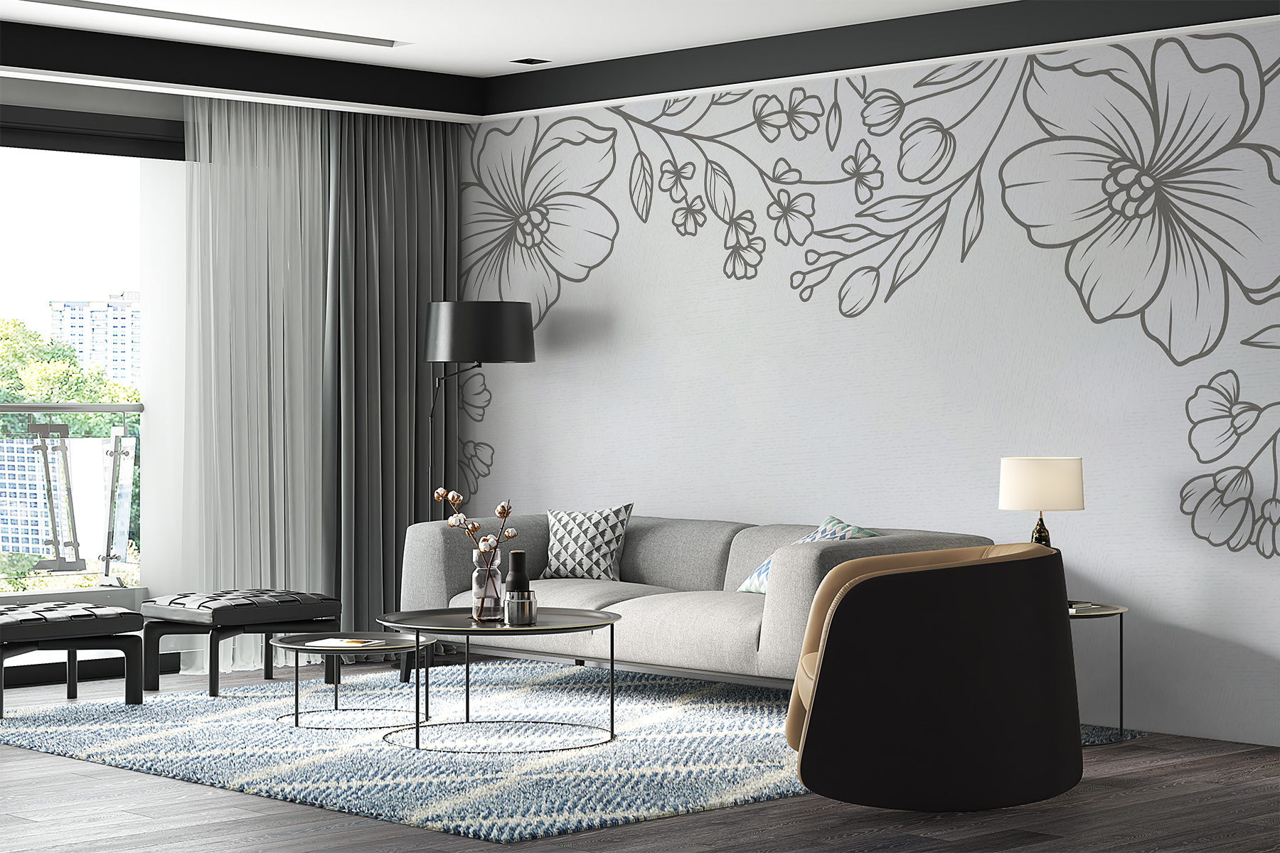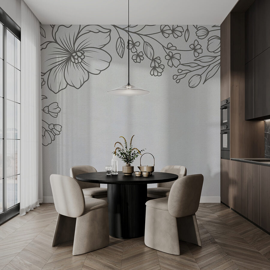 Každý okvetný lístok a list je nádherne prepracovaný do detailov, takmer ako jemná čmáranica, ktorá ožila. Vďaka neutrálnym tónom sú flexibilné a bez námahy sa kombinujú s rôznymi farbami a štýlmi. Je to také pozadie, ktoré nabáda k uvoľneniu a tvorivosti. Predstavte si ho v útulnom čitateľskom kútiku alebo ako pokojné ohnisko vo vašej obývačke – určite vyvolá radosť a komplimenty hostí!