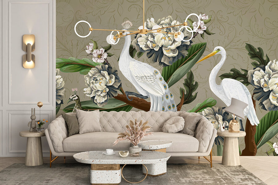 Predstavte si uvoľnenú eleganciu, ktorú prináša táto nástenná maľba – vaše steny rozprávajú zasnený príbeh pokojného botanického raja. Je ideálna pre niekoho, kto miluje prírodu, ale zároveň oceňuje nádych sofistikovanosti. Pávy a kvety sú také detailné, že sa môžete cítiť, akoby ste sa prechádzali po exotickej záhrade. Perfektný na vytvorenie faktora “wow” pri návšteve priateľov – zaručene vyvolá konverzáciu!
