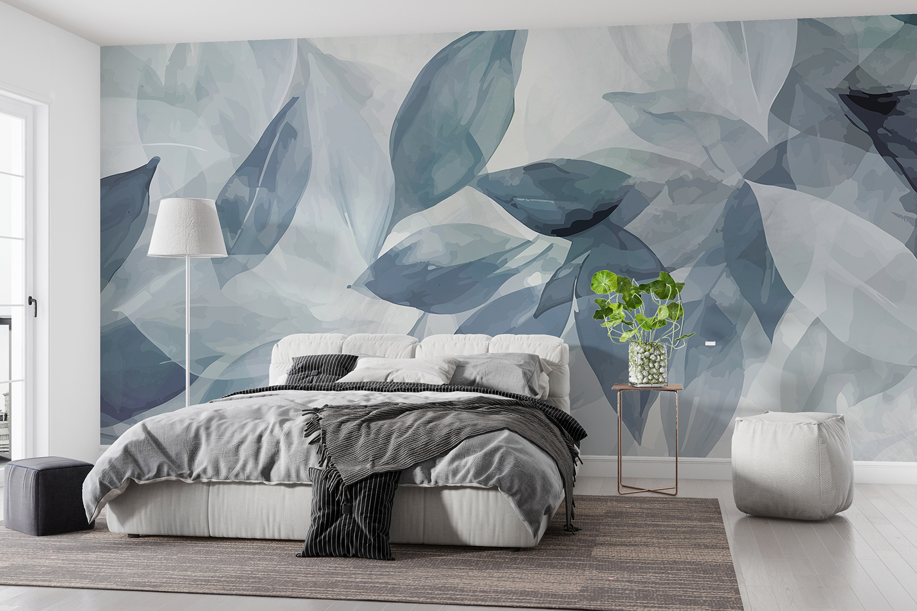 “Nástenné maľby w07981” je ako priniesť si zasnenú akvarelovú záhradu priamo k vám domov! Predstavte si, že sa zobudíte na túto – jemné odtiene modrých a sivých listov, ktoré akoby tancovali a šepkali na vašej stene. Má to pokojnú, vznášajúcu sa atmosféru, ktorá vás jednoducho vtiahne. Ideálny na lenivú nedeľnú rannú kávu alebo na pridanie upokojujúceho dotyku do každodenného zhonu.
