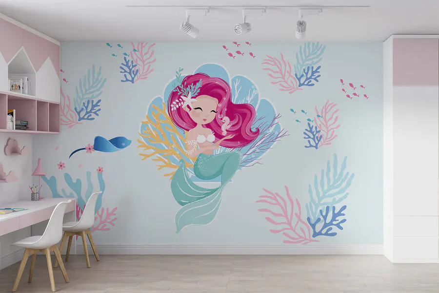Ponorte sa do sveta rozmarov s touto očarujúcou nástennou maľbou s rozkošnou kreslenou morskou pannou a jej verným kamarátom morským koníkom. Predstavte si to – tento hravý výjav okamžite premení každú nudnú stenu na spleť prímorského kúzla. Žiarivé ružové vlasy plynú ako vlny oceánu, zatiaľ čo farebné koraly dodávajú šmrnc životu. Predstavte si, že táto fototapeta rozžiari detskú izbu a roznieti ich fantáziu počas rozprávok pred spaním. Alebo možno navodí veselú atmosféru hravého čitateľského kútika. Každý pohľad na túto nástennú maľbu môže priniesť trochu radosti, vďaka čomu sa sny budú zdať o niečo reálnejšie. Ideálna pre každého, kto chce svojmu priestoru dodať nádych podmorského kúzla!