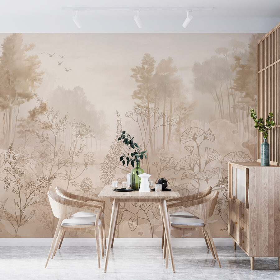Patrí do kategórie Obľúbené nástenné maľby, Príroda, Vzhľad dreva a Drevené nástenné maľby – v podstate je to superhviezda. Nežné stromy a múdre kvety vás možno donútia zabudnúť na zhon vonku. Ideálna do spálne alebo obývačky, keď si chcete oddýchnuť. Navyše, tieto jemné farby sa hodia ku všetkému, takže sa nemusíte obávať, že by sa dostali do konfliktu s vaším interiérom. Len si to predstavte – šálka čaju, pohodlné kreslo a táto krásna nástenná maľba, ktorá navodzuje atmosféru. Blaženosť!