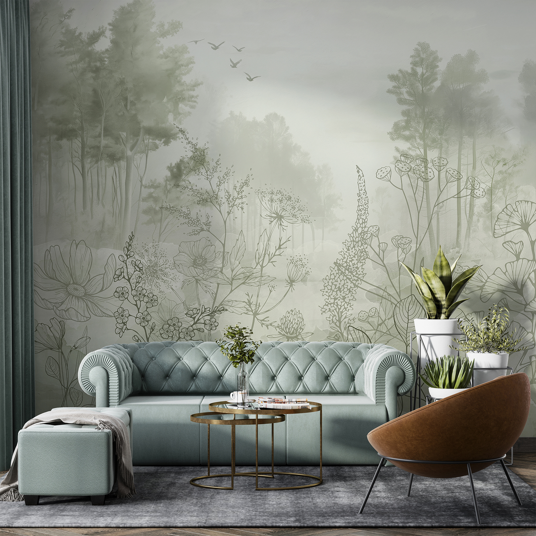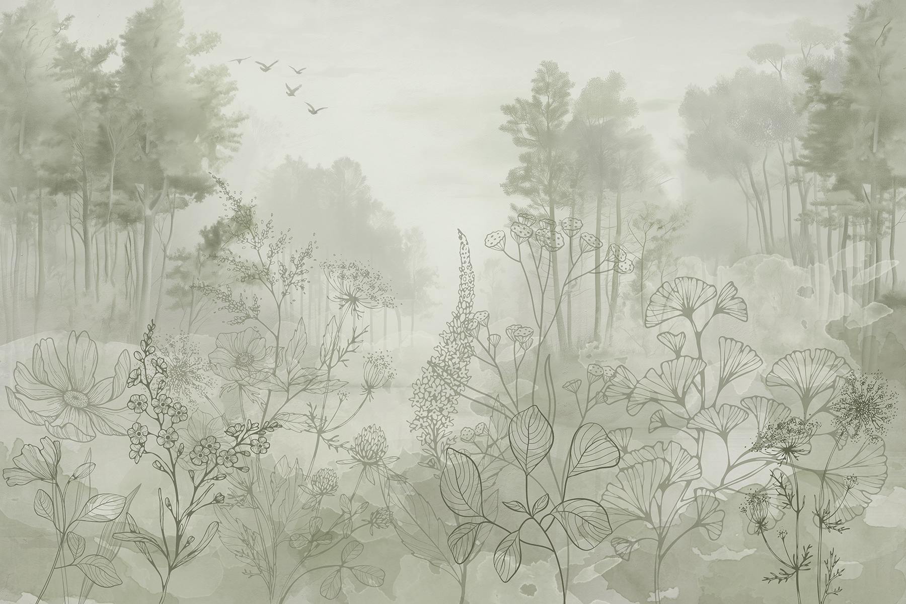 Premeňte svoj priestor na pokojný útek s touto očarujúcou nástennou maľbou, ktorá zobrazuje hmlistý les jemne pobozkaný prírodou. Predstavte si to – jemná hmla sa valí nad vysokými stromami a jemnými kvetmi, zatiaľ čo vtáky poletujú okolo a pridávajú šepot života. Je to ako vstúpiť do zasneného lesa bez toho, aby ste museli opustiť domov, vďaka čomu sa aj v tých najrušnejších dňoch budete cítiť pokojne. Táto nástenná maľba nie je len dekoráciou, ale aj zlepšovačom nálady, pozvánkou na zastavenie sa a dýchanie. Perfektne sa hodí do útulnej obývačky alebo upokojujúcej spálne a prináša dotyk kúzla prírody presne tam, kde je to najviac potrebné. Vezmite si šálku čaju, pohodlne sa usaďte a nechajte sa unášať pokojnými vibráciami.