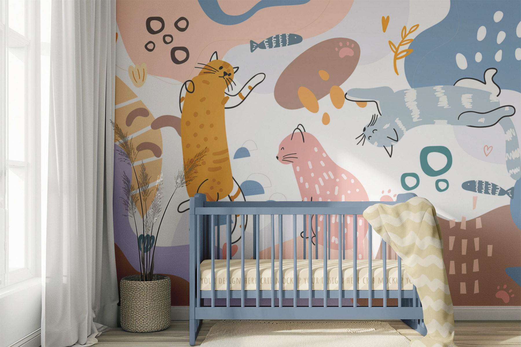 Premeňte akýkoľvek priestor pomocou tejto veselej nástennej maľby so živou skupinou mačiek na farebnom pozadí. Predstavte si lenivé popoludnie, keď tieto rozkošné chlpaté guľôčky okamžite vyčarujú úsmev každému, kto ide okolo. Hravý dizajn dodáva šmrnc rozmarnosti a je ideálny do útulného zákutia alebo aj do svetlej obývačky. Mačky ležia, preťahujú sa a možno plánujú ďalšiu prestávku na občerstvenie – kto by sa pri tom nezasmial? Vďaka rozkošnej vyváženosti farieb vytvára hrejivú, príjemnú atmosféru. Je to ako mať na stene mäkké mačacie objatie!