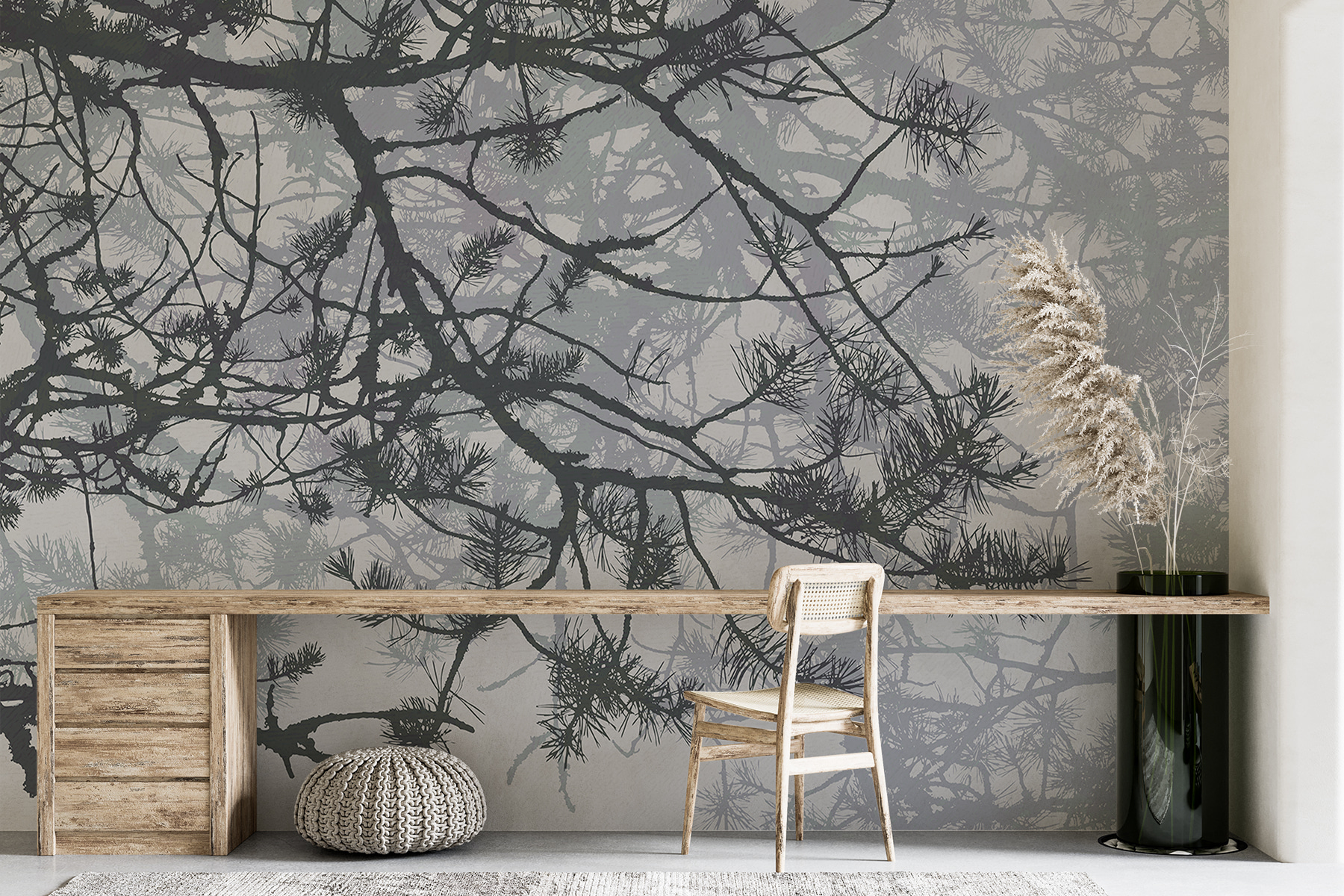Premeňte svoj priestor na pokojné lesné útočisko s touto očarujúcou nástennou maľbou vetvičiek stromov zdobených jemným ihličím. Predstavte si, že každý deň vstupujete do útulnej chaty, aj keď ste práve vo svojej obývačke. Jemná hra tieňov a svetla navodzuje upokojujúcu atmosféru, ktorá je ideálna na relaxáciu alebo snívanie o ďalšej túre. Je to takmer ako preniesť vonkajšok do interiéru bez chrobákov! Navyše je to skvelý spôsob, ako rozprúdiť rozhovory o prírode, stromoch a možno aj o jednom nevydarenom kempovaní. Prijmite outdoorovú atmosféru a nechajte svoju stenu rozprávať príbeh.