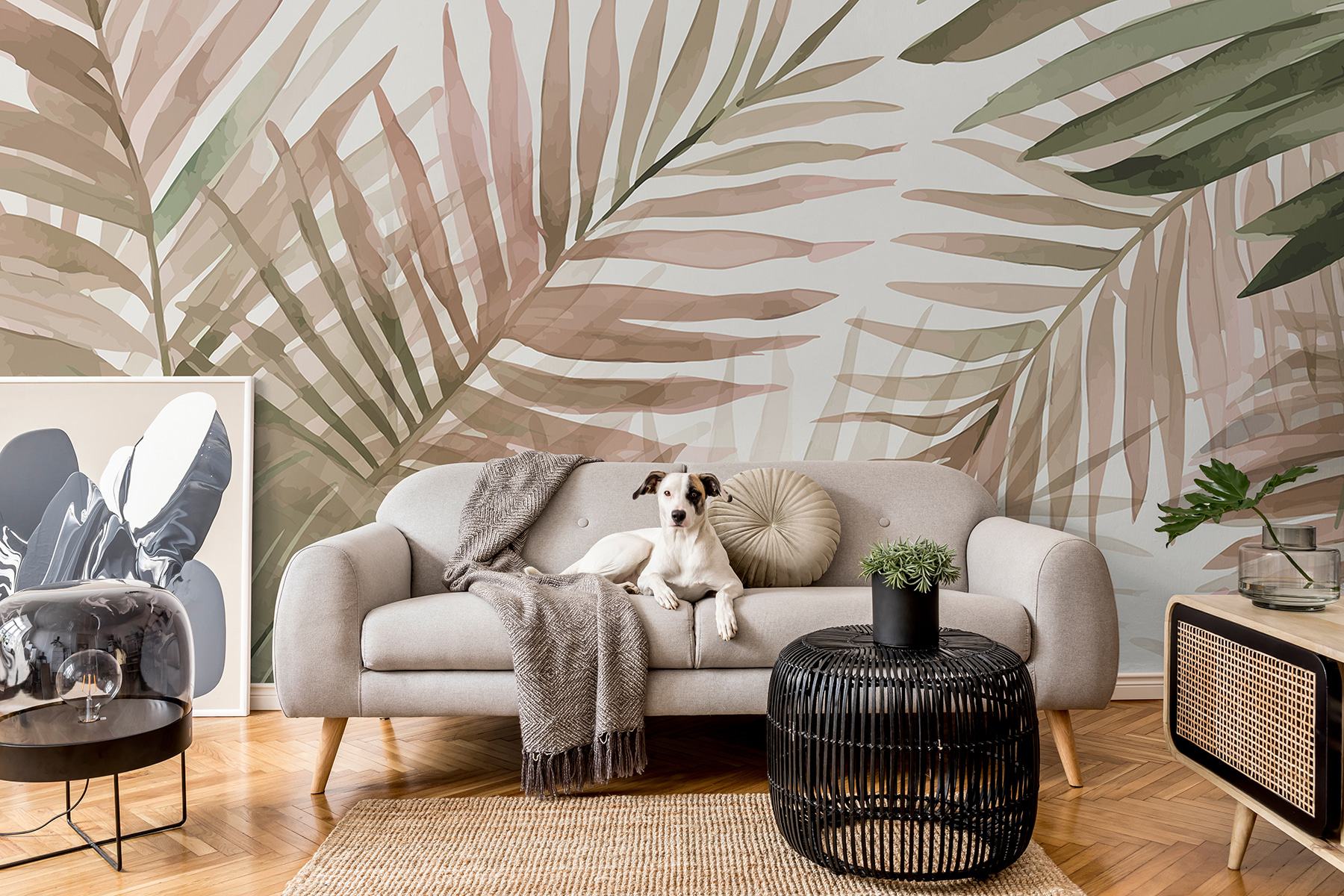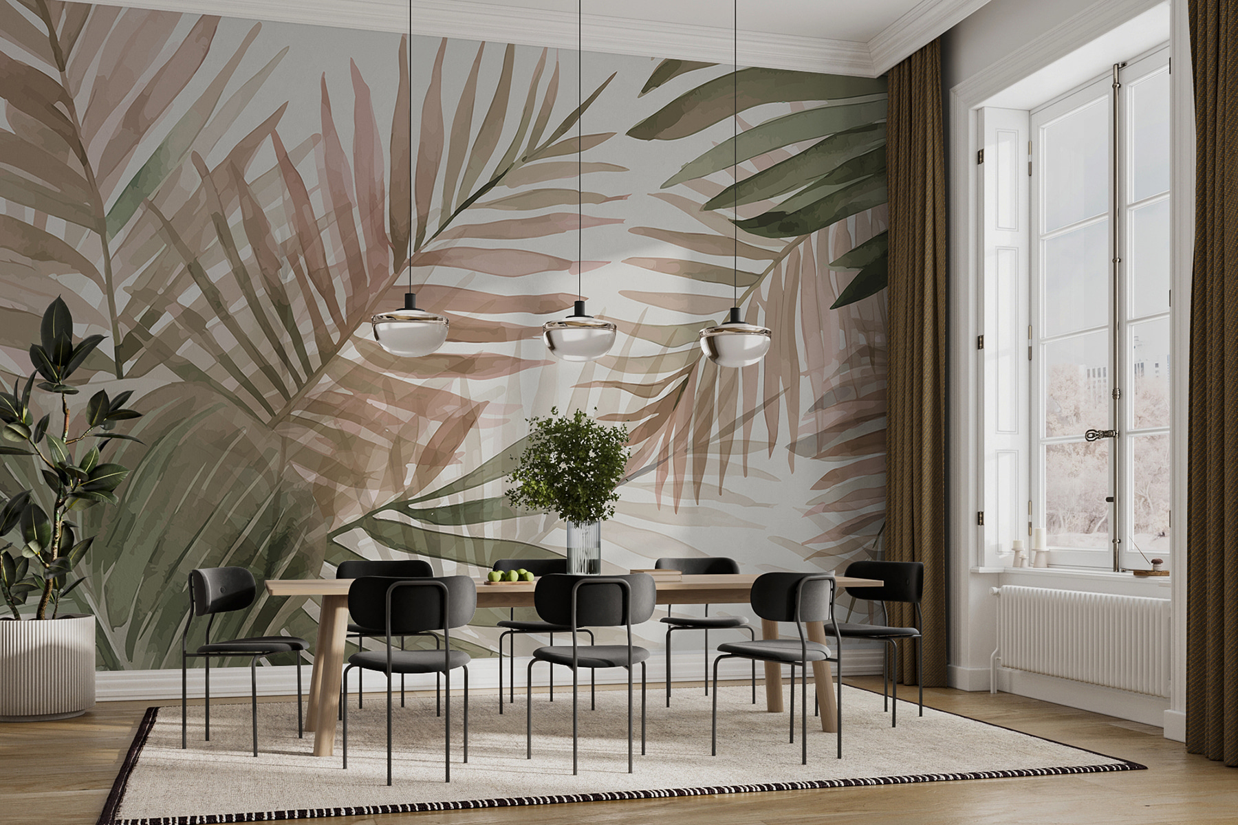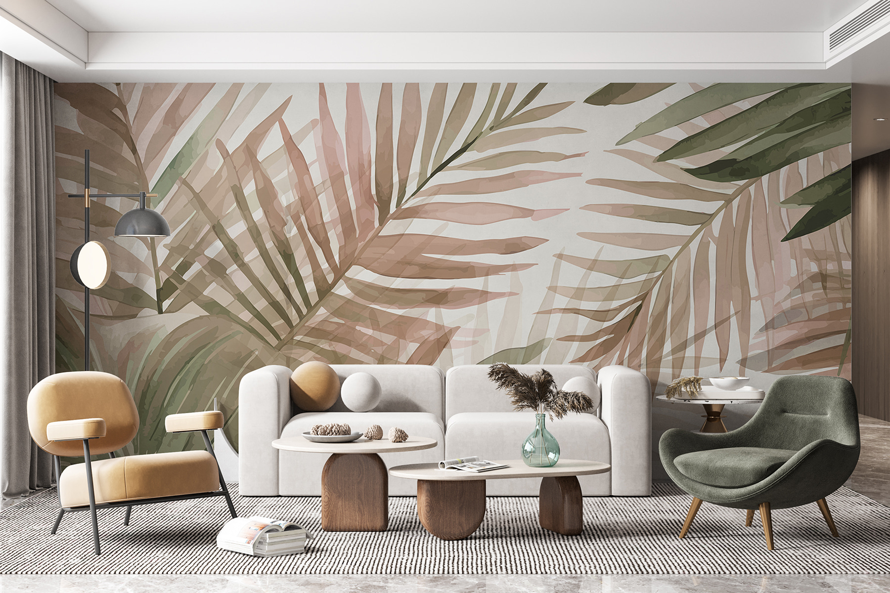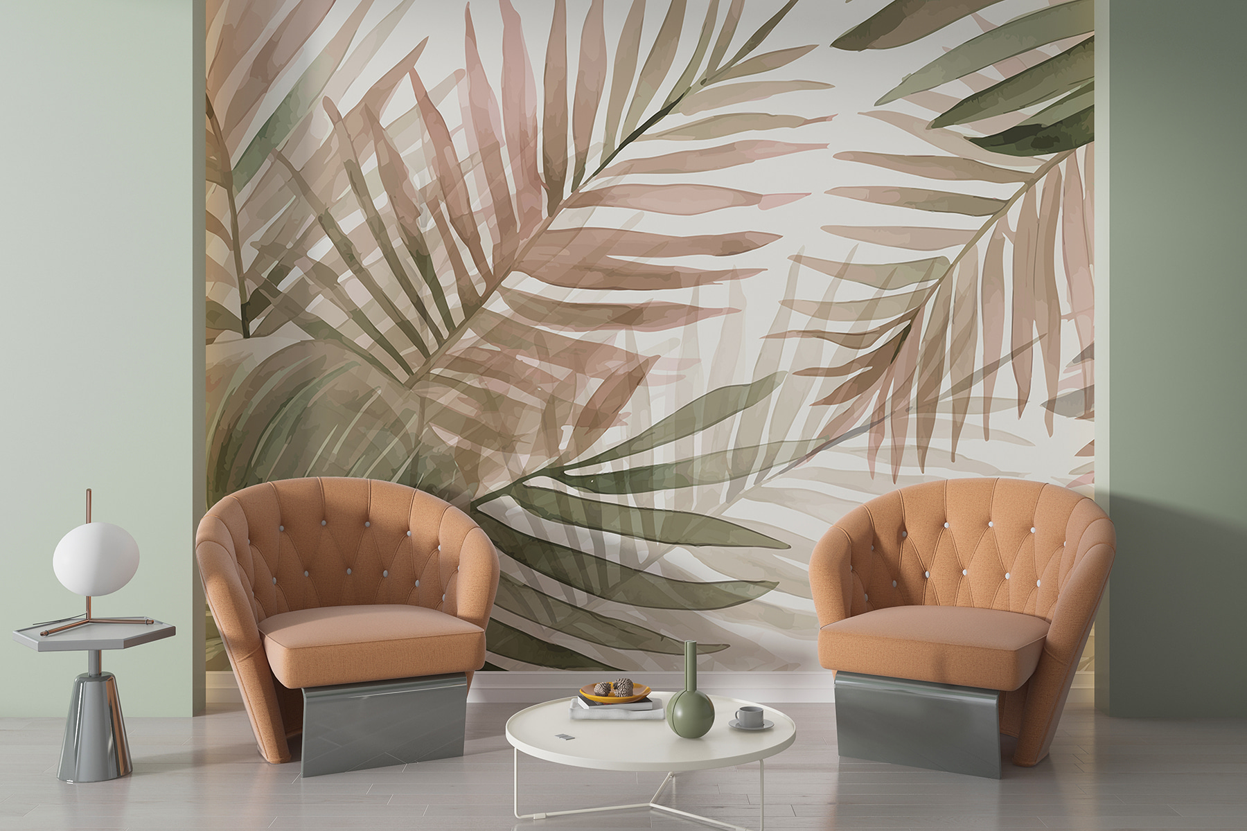 Niekedy je príjemné mať priestor, ktorý našepkáva “pokoj”, keď je život príliš hlučný. Táto nástenná maľba to dokáže. Budete sa chcieť odreagovať, popíjať niečo ovocné a snívať o plážach lemovaných palmami. Ak je váš domov vašou svätyňou, táto nástenná maľba môže byť práve tým závanom čerstvého vzduchu, ktorý potrebuje. 🍃