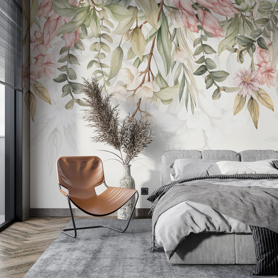 Zmes jemnej ružovej a jemnej zelenej vytvára upokojujúcu a príjemnú atmosféru – ideálnu na lenivú nedeľnú rannú kávu alebo večerný relax pri dobrej knihe. Vďaka nej máte pocit, akoby ste vstúpili do botanického náčrtu, ktorý prináša ten správny nádych sviežosti a pokoja. Myslite na tie dni, keď sa chcete len obklopiť krásou a jednoduchosťou – táto nástenná maľba je pre vás ako stvorená.