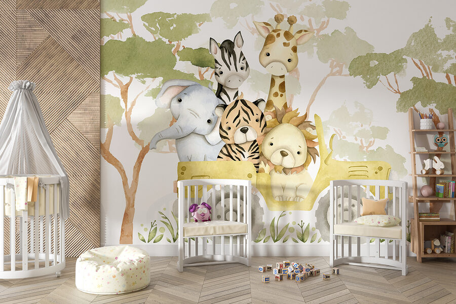 Predstavte si to: vojdete do miestnosti a tieto roztomilé stvorenia vás privítajú svojimi zvedavými výrazmi. Akoby vás pozývali na svoju malú eskapádu! Akvarelový štýl pôsobí jemne a upokojujúco – je to takmer ako scéna z rozprávkovej knihy, ktorá sa odohráva priamo u vás doma. Či už teda meníte detskú izbu, alebo len chcete do svojho života vniesť kúsok rozmarnosti, táto nástenná maľba vám pomôže.