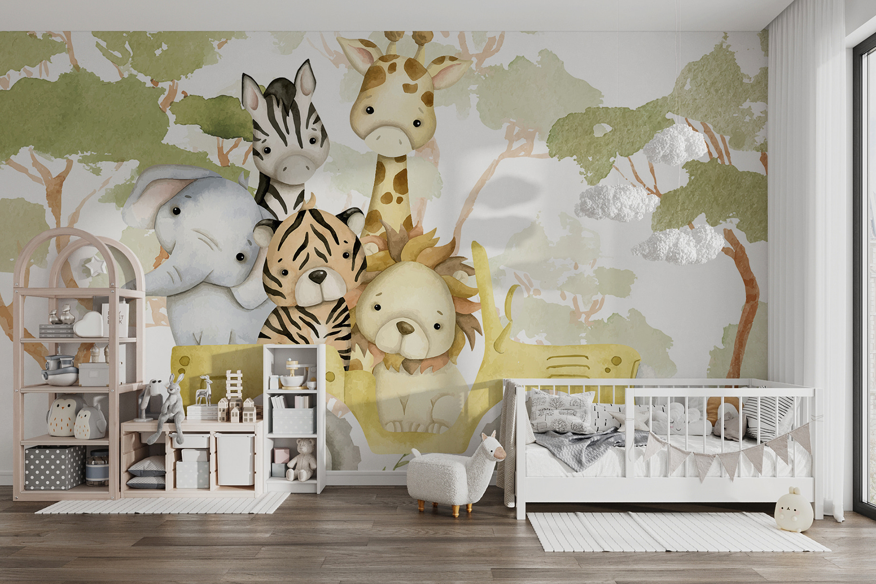 Predstavte si to: vojdete do miestnosti a tieto roztomilé stvorenia vás privítajú svojimi zvedavými výrazmi. Akoby vás pozývali na svoju malú eskapádu! Akvarelový štýl pôsobí jemne a upokojujúco – je to takmer ako scéna z rozprávkovej knihy, ktorá sa odohráva priamo u vás doma. Či už teda meníte detskú izbu, alebo len chcete do svojho života vniesť kúsok rozmarnosti, táto nástenná maľba vám pomôže.