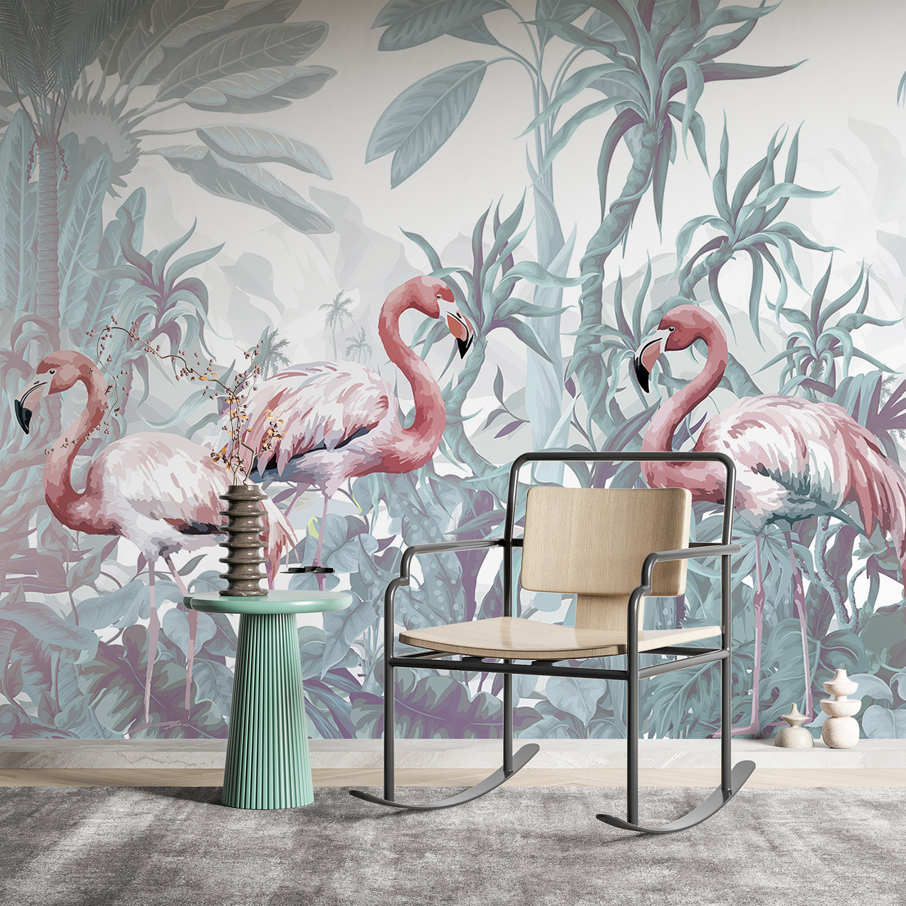 Vstúpte do pulzujúceho sveta s touto úžasnou nástennou maľbou, na ktorej je živá skupina plameniakov v bujnej džungli. Predstavte si to: ružové odtiene plameniakov kontrastujú s morom tropickej zelene a vytvárajú priestor, ktorý pôsobí pokojne a zároveň povzbudzujúco. Je to ako mať na stene kúsok raja, ktorý vás pozýva na oddych po dlhom dni. Predstavte si, ako popíjate rannú kávu obklopení krásou prírody alebo hostíte priateľov, ktorí sa pri pohľade na tento hravý dekor neubránia úsmevu. Ideálny do každej miestnosti, ktorá túži po bezstarostnej tropickej atmosfére – táto nástenná maľba premení obyčajné steny na nádherný únik. Nechajte plameniaky rozžiariť váš priestor a ducha!