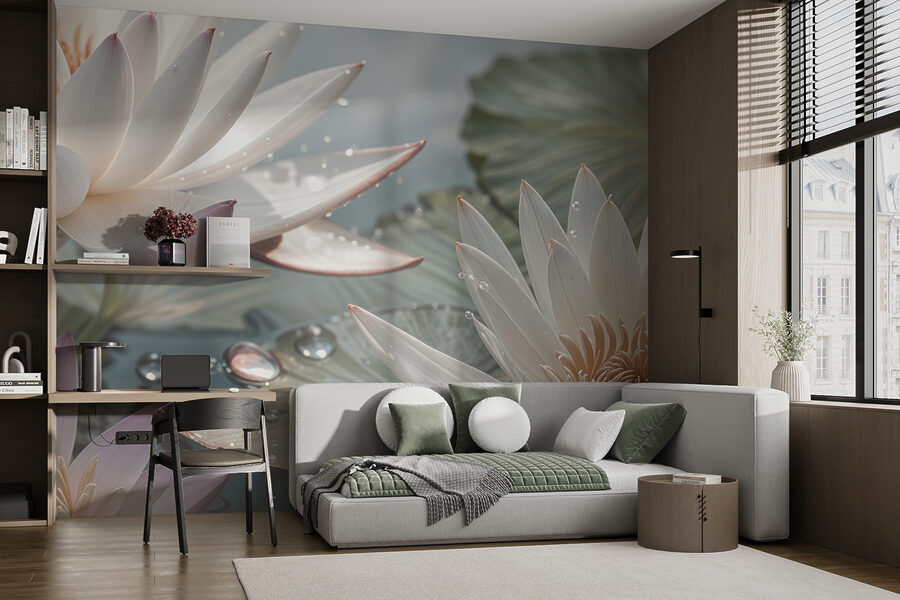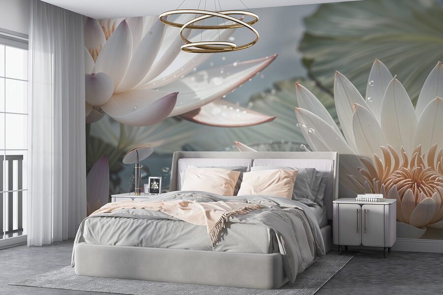 Predstavte si, že sa zobudíte v izbe, ktorá pripomína upokojujúce ráno pri jazere, kde sa lotosové kvety trblietajú čerstvou rosou – naozaj jednoduché potešenie. Táto nástenná maľba nie je len dekoráciou, je to brána do zenu, vďaka ktorej sa aj pondelkové rána budú cítiť o niečo pôvabnejšie. Predstavte si, ako sa usadíte do pohodlného kresla so šálkou čaju, obklopení touto pokojnou scénou. Je to kúsok umeleckého diela prírody rozprsknutý po vašej stene. Ideálne na to, aby ste v chaose našli chvíľu pokoja – alebo to aspoň predstierali.