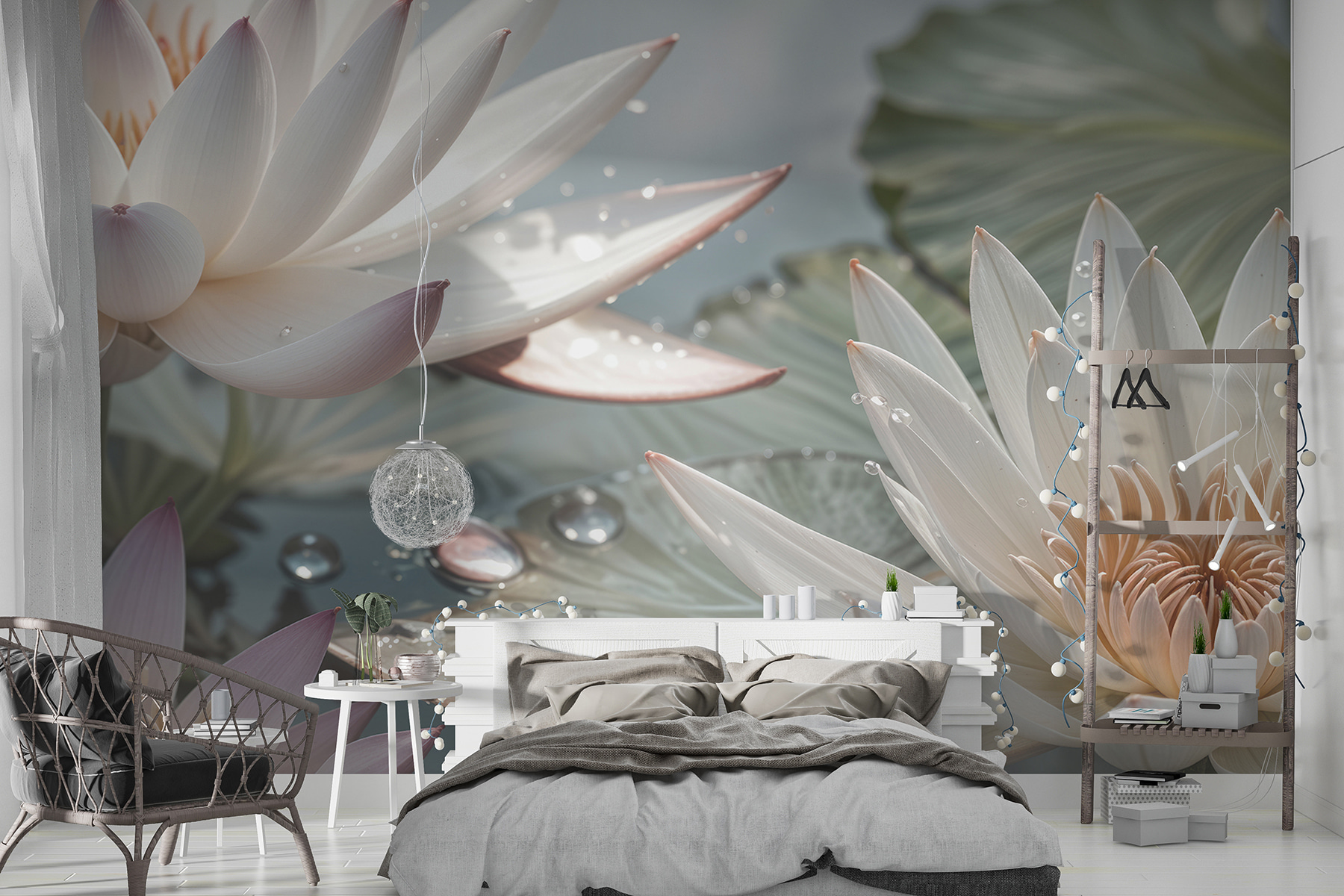 Predstavte si, že sa zobudíte v izbe, ktorá pripomína upokojujúce ráno pri jazere, kde sa lotosové kvety trblietajú čerstvou rosou – naozaj jednoduché potešenie. Táto nástenná maľba nie je len dekoráciou, je to brána do zenu, vďaka ktorej sa aj pondelkové rána budú cítiť o niečo pôvabnejšie. Predstavte si, ako sa usadíte do pohodlného kresla so šálkou čaju, obklopení touto pokojnou scénou. Je to kúsok umeleckého diela prírody rozprsknutý po vašej stene. Ideálne na to, aby ste v chaose našli chvíľu pokoja – alebo to aspoň predstierali.