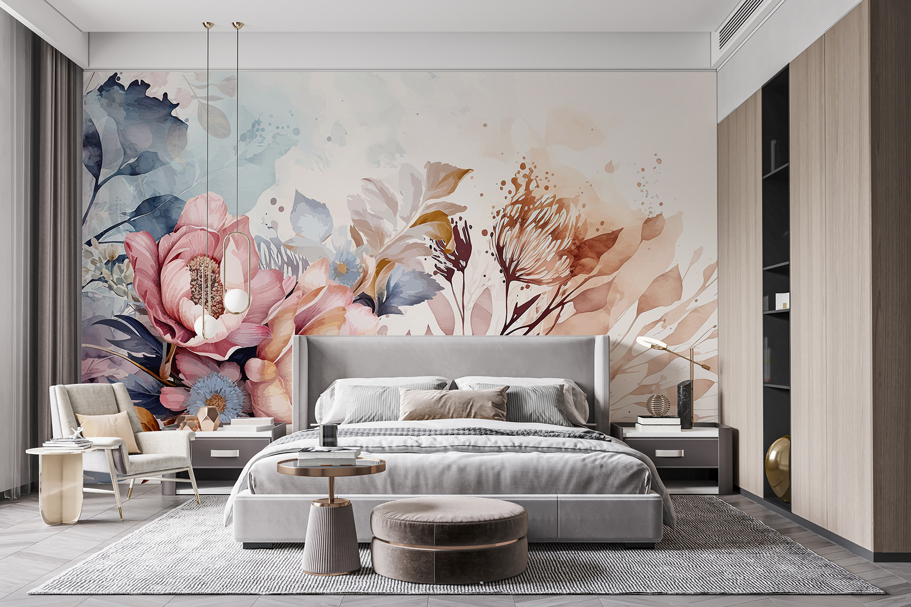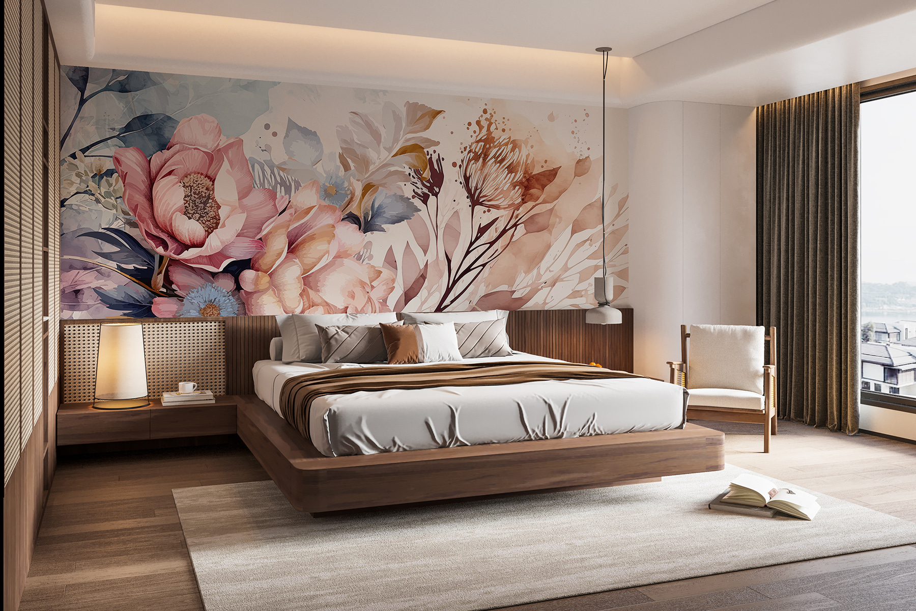 Predstavte si toto: vojdete do miestnosti a bác! Táto nástenná maľba vás privíta sviežimi vírmi kvetov a listov. Je to ako vstúpiť do zasnenej akvarelovej záhrady – len bez chrobákov. Ideálna na doplnenie prírody bez starostí so zalievaním rastlín. Pôsobí útulným dojmom, ako keď sa zabalíte do obľúbenej deky a popíjate čaj. Priatelia sa môžu zastaviť len preto, aby obdivovali umelecký talent. Je to čaro prírody zachytené a vytlačené – pripravené premeniť každú stenu na príbeh.
