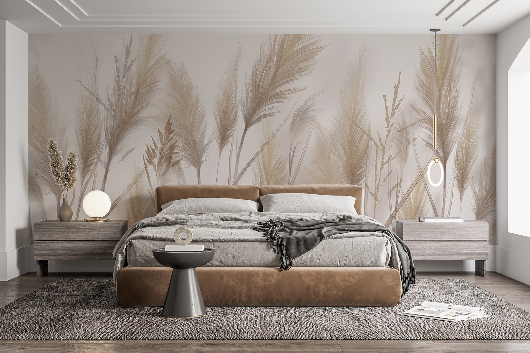 Premeňte akýkoľvek priestor pomocou nástennej maľby “Šepkajúca pšenica v jemnom svetle”. Táto pokojná nástenná maľba pozýva do interiéru na jemný dotyk prírody a vďaka jemným tónom a pôvabnej pšenici kolísajúcej sa vo vetre navodzuje pocity pokoja. Predstavte si, že popíjate rannú kávu a zároveň sa cítite ako na útulnom poli, ktoré sa vyhrieva v teplom slnečnom svetle. Táto nástenná maľba, ideálna do obývačky alebo pokojného zákutia, vytvára kulisu, ktorá vyvoláva radosť a rozjímanie. Akoby príroda pošepkala svoje tajomstvá a tie si našli cestu do vášho domova. Je jedinečná a upokojujúca, skutočne prináša do interiéru atmosféru vonkajšieho prostredia – samozrejme, bez peľu!