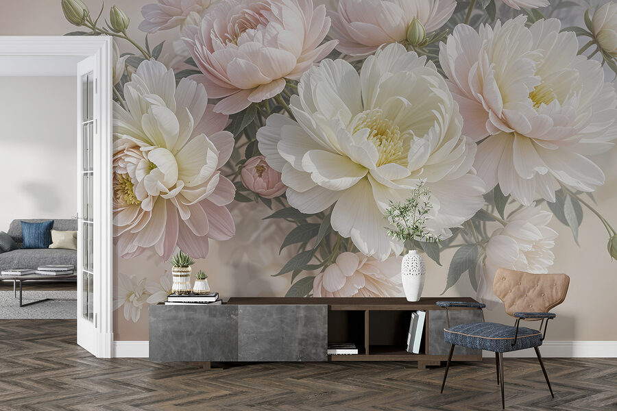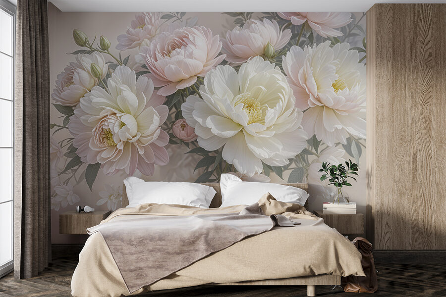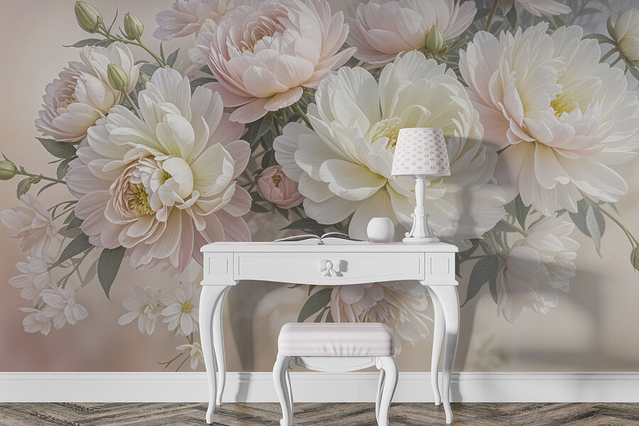 Predstavte si, že vojdete do miestnosti a privíta vás toto zasnené more bielych a ružových kvetov – akoby ste vstúpili do rozprávkovej záhrady! Táto nástenná maľba priam šepká eleganciu a veselosť, však? Je ideálna na premenu akéhokoľvek nudného priestoru na pokojnú oázu. Predstavte si, že sa zobudíte a tieto obrovské pivonky vás obklopia jemným kvetinovým objatím. Je to trochu, akoby sa príroda rozhodla utáboriť na vašej stene. Ideálne pre snílkov aj milovníkov kvetov, je to útulné umelecké objatie, ktoré čaká, aby vám rozjasnilo deň. Stačí pridať pohodlné kreslo, dobrú knihu a nechať kvety pôsobiť svoje kúzlo!