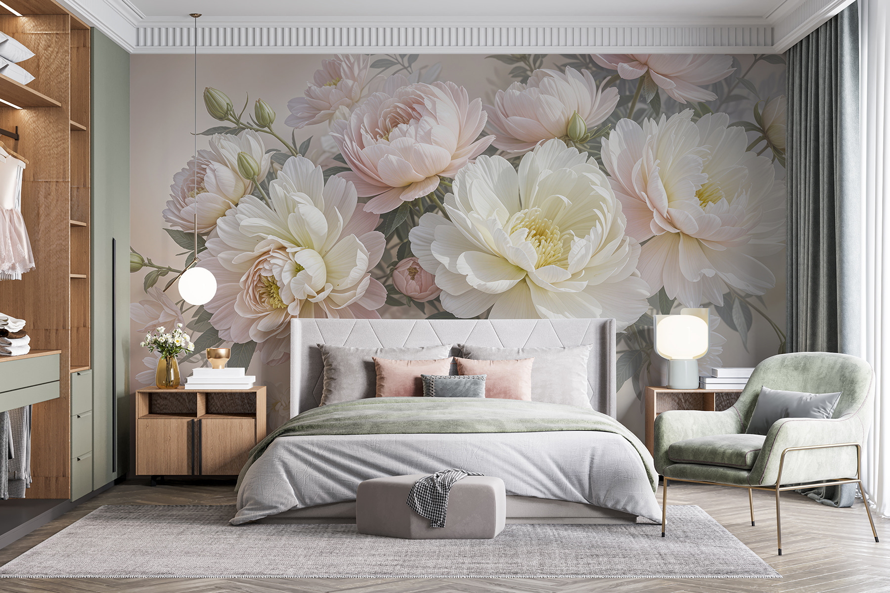Predstavte si, že vojdete do miestnosti a privíta vás toto zasnené more bielych a ružových kvetov – akoby ste vstúpili do rozprávkovej záhrady! Táto nástenná maľba priam šepká eleganciu a veselosť, však? Je ideálna na premenu akéhokoľvek nudného priestoru na pokojnú oázu. Predstavte si, že sa zobudíte a tieto obrovské pivonky vás obklopia jemným kvetinovým objatím. Je to trochu, akoby sa príroda rozhodla utáboriť na vašej stene. Ideálne pre snílkov aj milovníkov kvetov, je to útulné umelecké objatie, ktoré čaká, aby vám rozjasnilo deň. Stačí pridať pohodlné kreslo, dobrú knihu a nechať kvety pôsobiť svoje kúzlo!