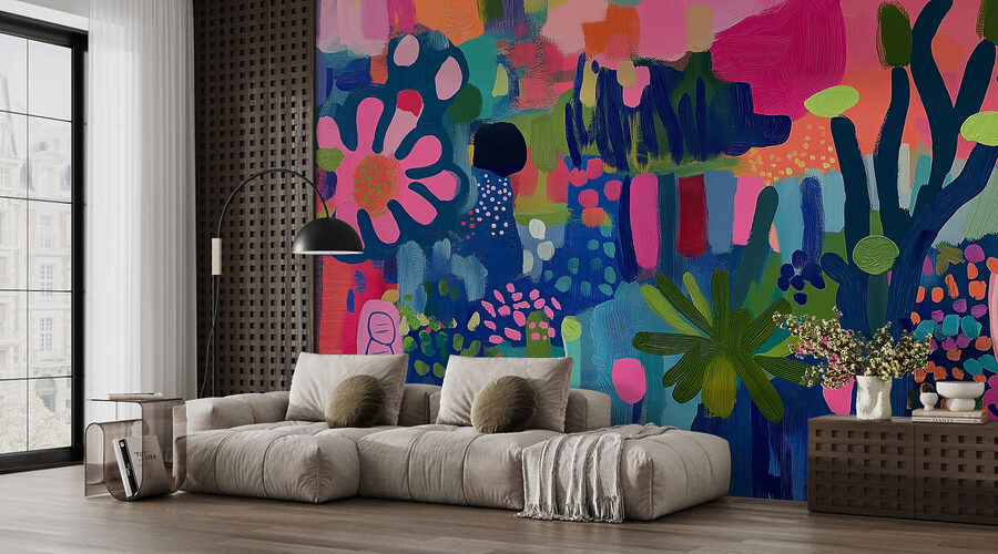 Predstavte si, že vstúpite do miestnosti a ocitnete sa v útulnom, farebnom objatí rastlín a kvetov – znie to snovo, však? Táto nástenná maľba je v podstate záhradná párty na vašich stenách. Žiarivé farebné škvrny spolu tancujú a vytvárajú radostný neporiadok, ktorý dokáže zdokonaliť len skutočný umelec. Je to ako prechádzka rozmarnou záhradou bez toho, aby ste potrebovali zelený palec. Je ideálny na oživenie každej miestnosti – je to objatie steny, ktoré prináša dobrú náladu. Nechajte svoje steny rozkvitnúť!