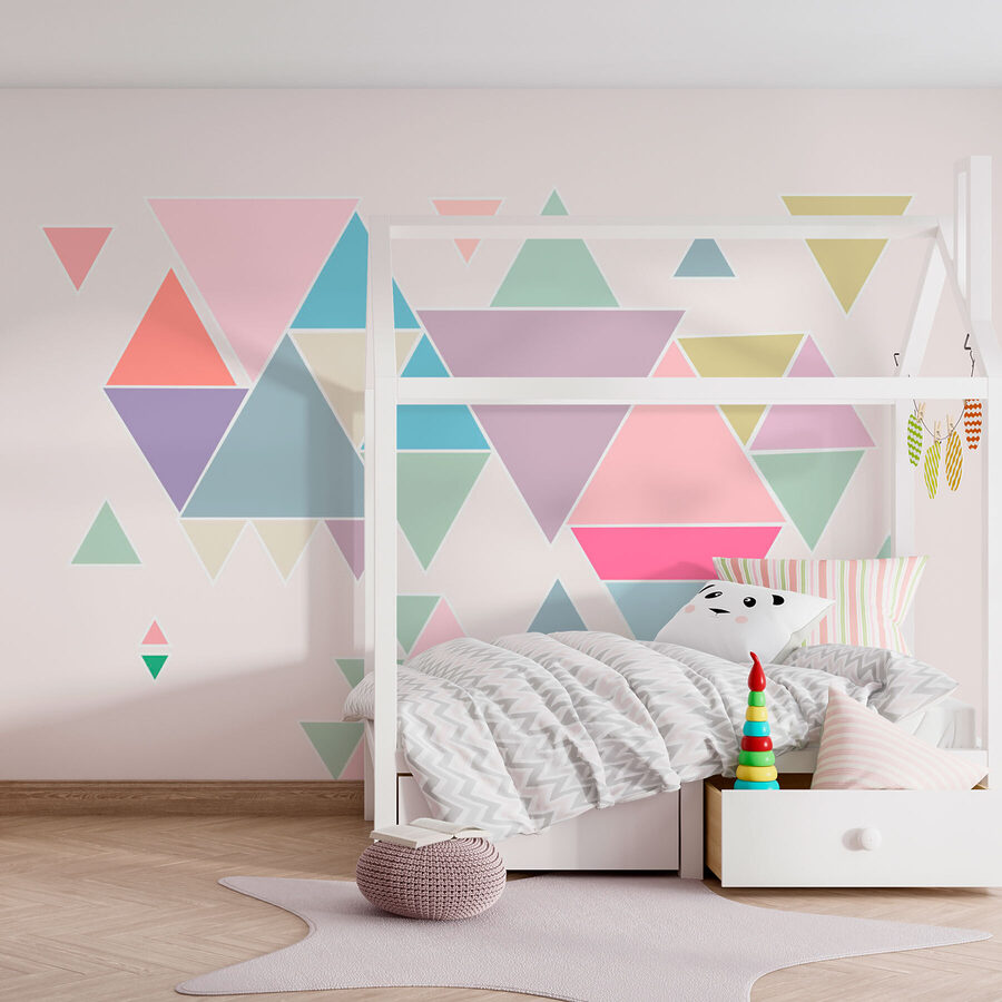 Predstavte si to: explózia kaleidoskopu priamo na vašej stene. Táto nástenná maľba “Skupina trojuholníkov” spája jemné pastelové farby a výrazné tvary do abstraktného diela, ktoré si priam pýta pozornosť. Ideálna na dni, keď vaša izba potrebuje oživenie – alebo keď vás už unavuje obyčajná béžová. Predstavte si, že popíjate kávu a trojuholníky vám šepkajú príbehy o dávno zabudnutých triumfoch z hodín geometrie. Je to ako joga pre oči – upokojuje a zároveň povzbudzuje. Zaveste ho, nechajte sa počuť komplimenty a užívajte si každodennú dávku farebného chaosu!