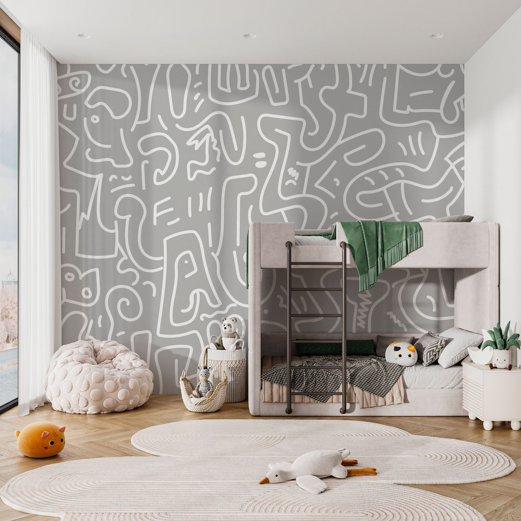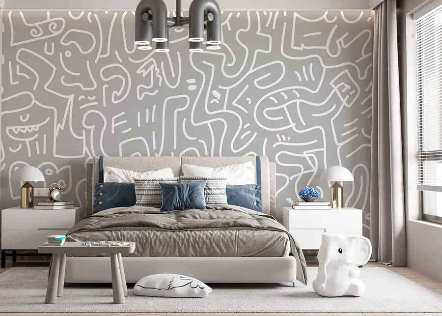 Predstavte si, že vojdete do svojho priestoru a privítajú vás hravé víry tejto sivobielej nástennej maľby. Je to, akoby sa moderné umenie rozhodlo usporiadať na vašej stene večierok a všetci sú pozvaní. Tento kúsok je ideálny pre tých, ktorí túžia po kombinácii štýlu a rozmarnosti, a dodáva dizajnérsky šmrnc bez toho, aby sa bral príliš vážne. Je to pozadie pre vaše kreatívne myšlienky alebo ideálny začiatok konverzácie. Vďaka nemu budete mať pocit, že vás vaša izba jemne a štýlovo objíme zakaždým, keď do nej vstúpite. Prečo sa uspokojiť s obyčajným, keď môžete mať toto?