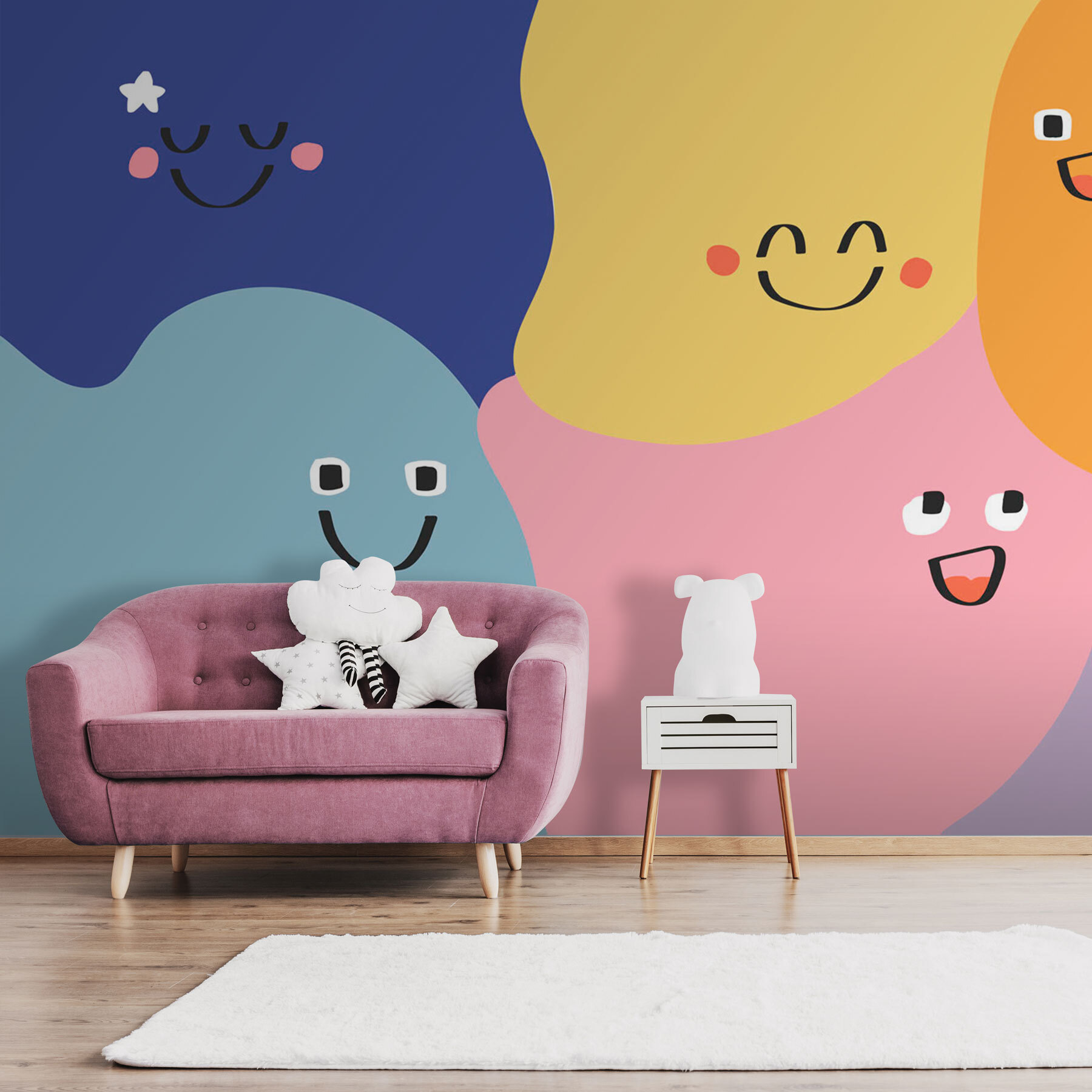 Vneste do každého priestoru kvapku radosti s touto žiarivou nástennou maľbou s hravou zmesou farebných tvarov a veselých tvárí. Je to ako okamžité zlepšenie nálady na vašej stene! Predstavte si, že vojdete do miestnosti, ktorá je ako živá – pri každom pohľade sa stretnete so šťastnými výrazmi, ktoré akoby sa na vás takmer usmievali. Ideálne sa hodí do útulného zákutia alebo živej herne a dodáva očarujúci nádych, ktorý podnecuje kreativitu. Priatelia a rodina si ho zamilujú a možno sa aj trochu zasmeje. Nie je to len dekorácia, je to oslava rozmarnosti a tepla, ktorá bez námahy premení váš priestor na zábavné útočisko. Kto by sa nechcel cítiť šťastný už len pri pohľade na svoje steny?