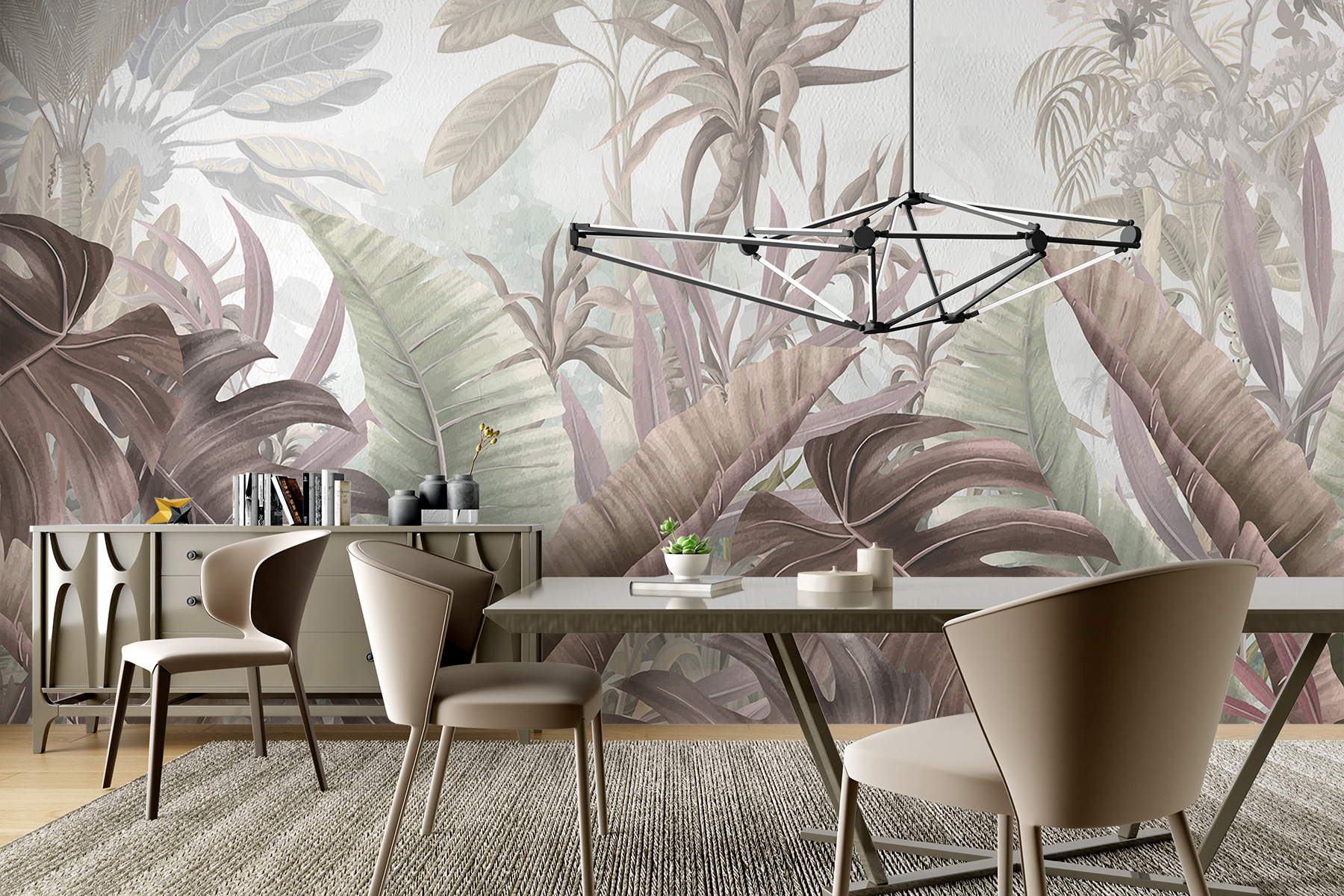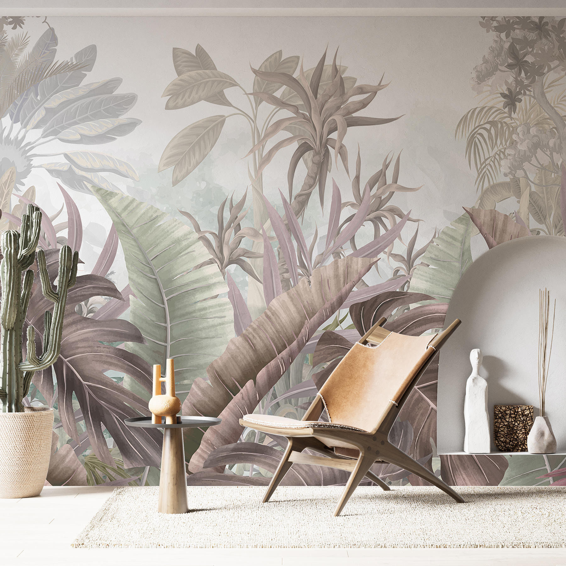Vstúpte do svojho vlastného tropického raja s nástennou maľbou “Tropická zmes prírodných textúr”. Tento žiarivý dizajn prináša svieže palmové listy a bohaté drevené textúry priamo do vášho obytného priestoru a zahalí vás do tepla a dobrodružstva. Predstavte si prechádzku džungľou – bez otravného hmyzu! Ideálna na premenu akejkoľvek miestnosti na exotický útek, je to malý kúsok krásy prírody. Táto nástenná maľba sa môže stať najlepším začiatkom konverzácie na vašom najbližšom stretnutí. Nie je to len dekorácia – je to mini dovolenka!