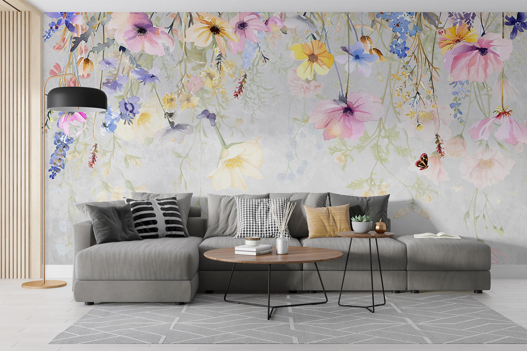 Predstavte si, že vojdete do miestnosti a ocitnete sa v zasnenej záhrade, kde kvety šepkajú tajomstvá a motýle hravo koketujú s vánkom. Táto nástenná maľba nielenže premení stenu, ale prenesie vás na lúku plnú pastelových kvetov a jemných krídel. Pocíťte pokoj, keď váš priestor rozkvitne životom – ideálne na podnietenie kreativity alebo len na oddych po hektickom dni. Je to ako pozvať do svojho domova jarné ráno bez toho, aby ste museli čokoľvek zalievať. Vaša osobná oáza bez chrobákov!