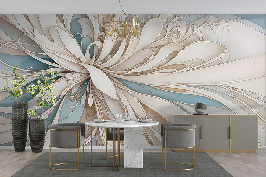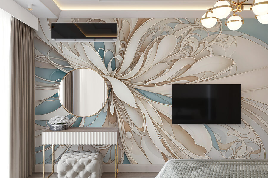Predstavte si, že sa zobudíte a na stene sa vám roztancujú biele a modré víry – ako vlny, ktoré sa stretávajú s mrakmi v nežnom objatí. Táto nástenná maľba je ako pošepkané tajomstvo samotnej prírody priamo vo vašej obývačke. Je sčasti snový, sčasti moderné umenie a celý je o premene všednosti na kúzlo. Predstavte si, že usporiadate večeru a niekto sa stratí v jej vzoroch – rozhovor sa zvrtne do príjemných úvah o umení a živote. Nie je to len dekorácia, je to zážitok. Dotyk zenu, špliechanie oblohy… kto by povedal, že stena môže pôsobiť ako poézia?