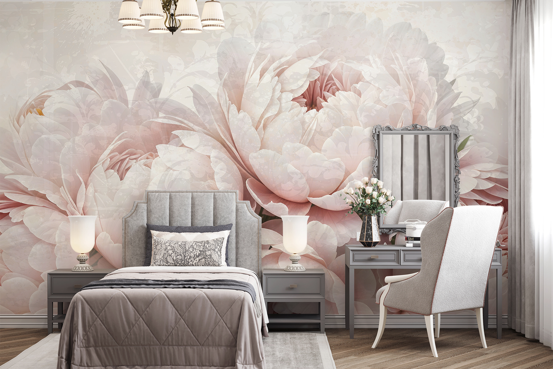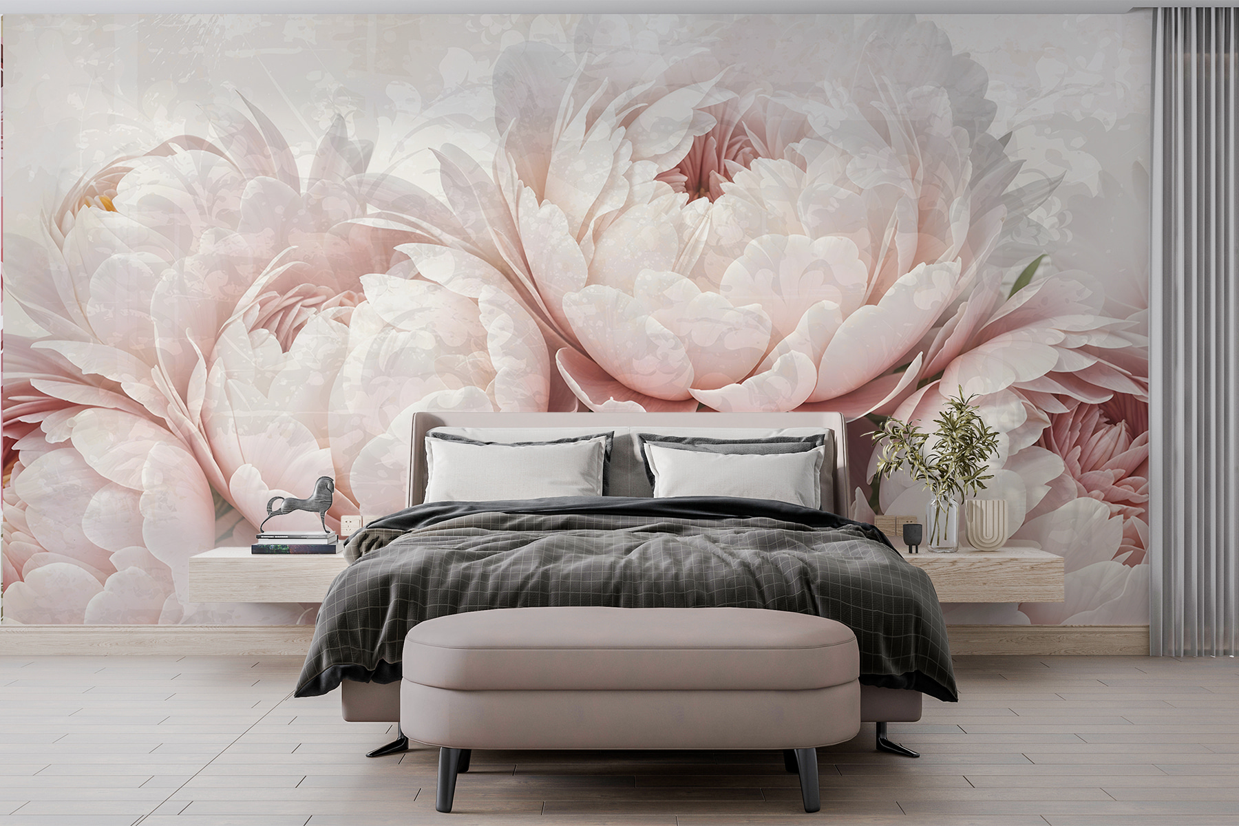 Predstavte si, že sa každý deň prebúdzate do záhrady s ružovými pivonkami bez konví a bzučiacich včiel. Táto fototapeta “Skupina ružových kvetov” premení každú miestnosť na pokojnú kvetinovú oázu. Jemné ružové okvetné lístky prakticky našepkávajú eleganciu, vďaka ktorej sa budete cítiť ako v útulnom objatí jemných okvetných lístkov. Je ideálna pre snílkov a milovníkov kvetov, dodáva im nádych pôvabu prírody bez zablatených topánok. Postavte si túto krásku do svojho obľúbeného kúta – kto by povedal, že steny môžu byť také upokojujúce?