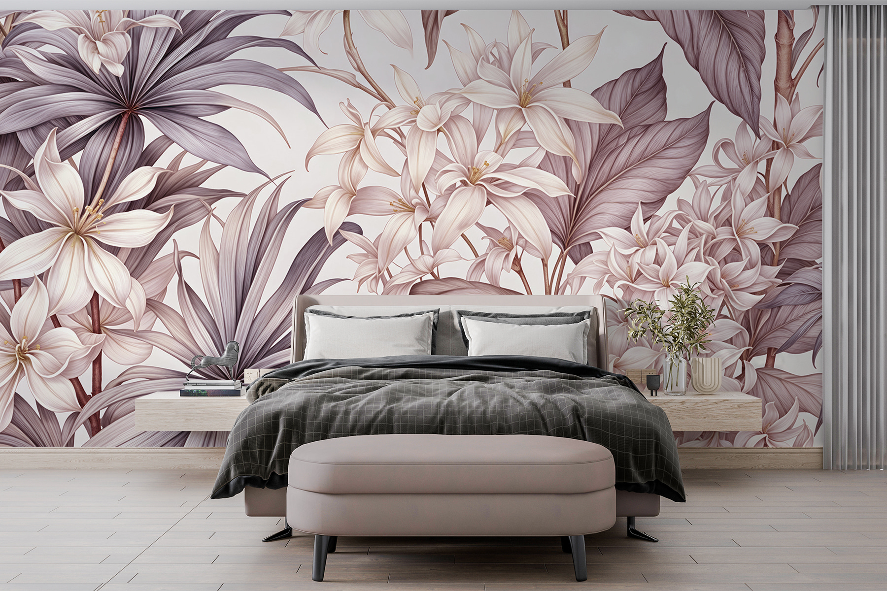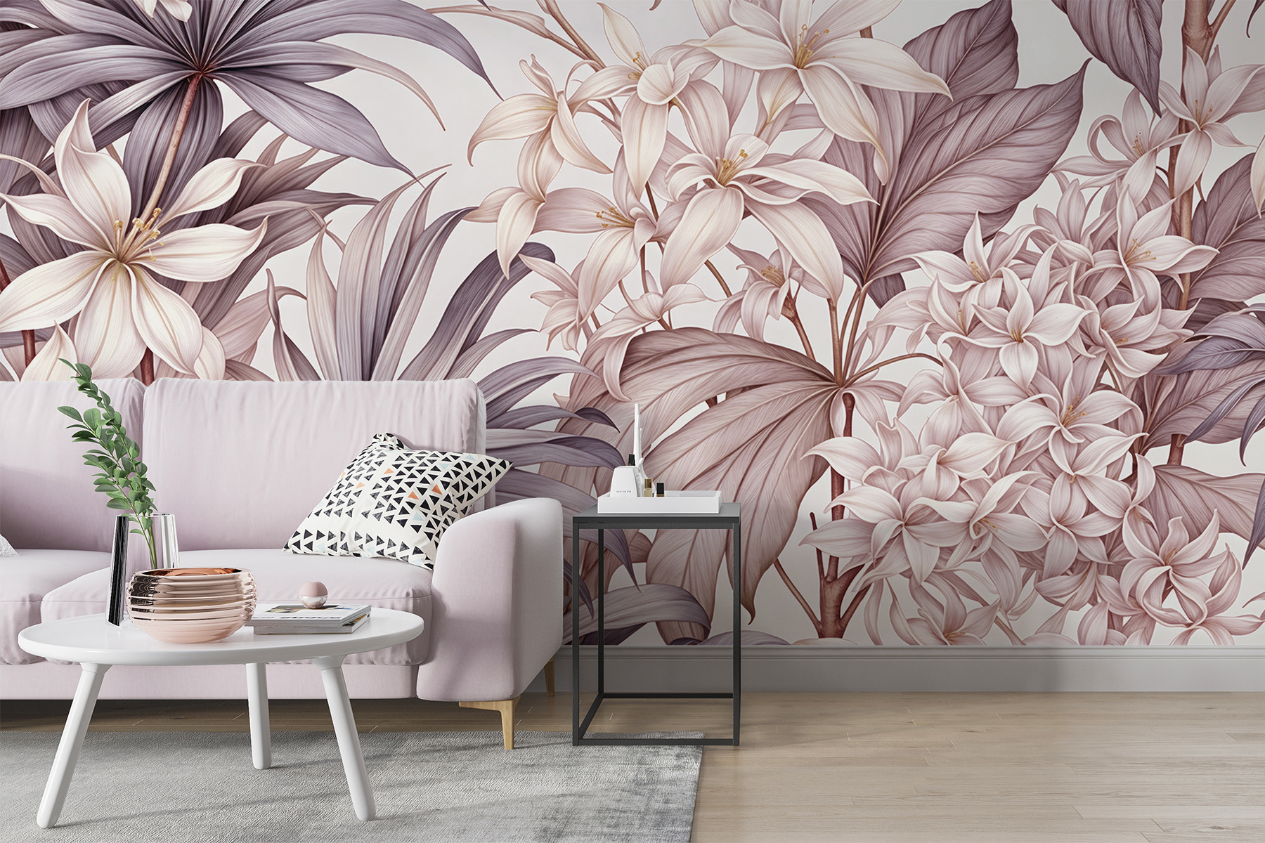 Predstavte si, že vstúpite do svojej obývačky a privíta vás nástenná maľba “Elegancia v jednofarebných kvetoch”. Je to ako pokojné objatie jemného vánku zabalené do jemných okvetných lístkov – táto nástenná maľba našepkáva sofistikovanosť. Monochromatické kúzlo sa mieša s umeleckým umením prírody a mení steny na rozhovory. Vaši hostia sa možno budú chcieť zdržať o niečo dlhšie. Toto nie je len dekorácia – je to poézia, ktorá navodzuje náladu. Ideálne pre tých, ktorí zbožňujú kvety, ale nemajú zelený palec. Možno je čas nechať svoje steny rozkvitnúť! 🌼