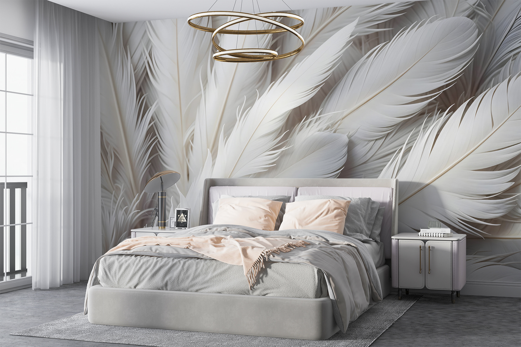 Predstavte si, že máte priamo vo svojej obývačke kŕdeľ jemného peria, ktoré šepká elegantne. Táto fototapeta “Skupina bielych pierok” je ideálna pre chvíle, keď chcete, aby sa váš priestor cítil ako pokojné malé hniezdo. Nie je to len nástenné umenie, je to snenie, okolo ktorého môžete prechádzať každé ráno. Jemná biela a nežné krivky sľubujú, že do vášho dňa vnesú pocit pokoja a rozmarnosti. Predstavte si to: ležíte na pohodlnom kresle v žiari večerných svetiel a miestnosť pôsobí ako svätyňa. Ľahká ako pierko, ale nezabudnuteľná.