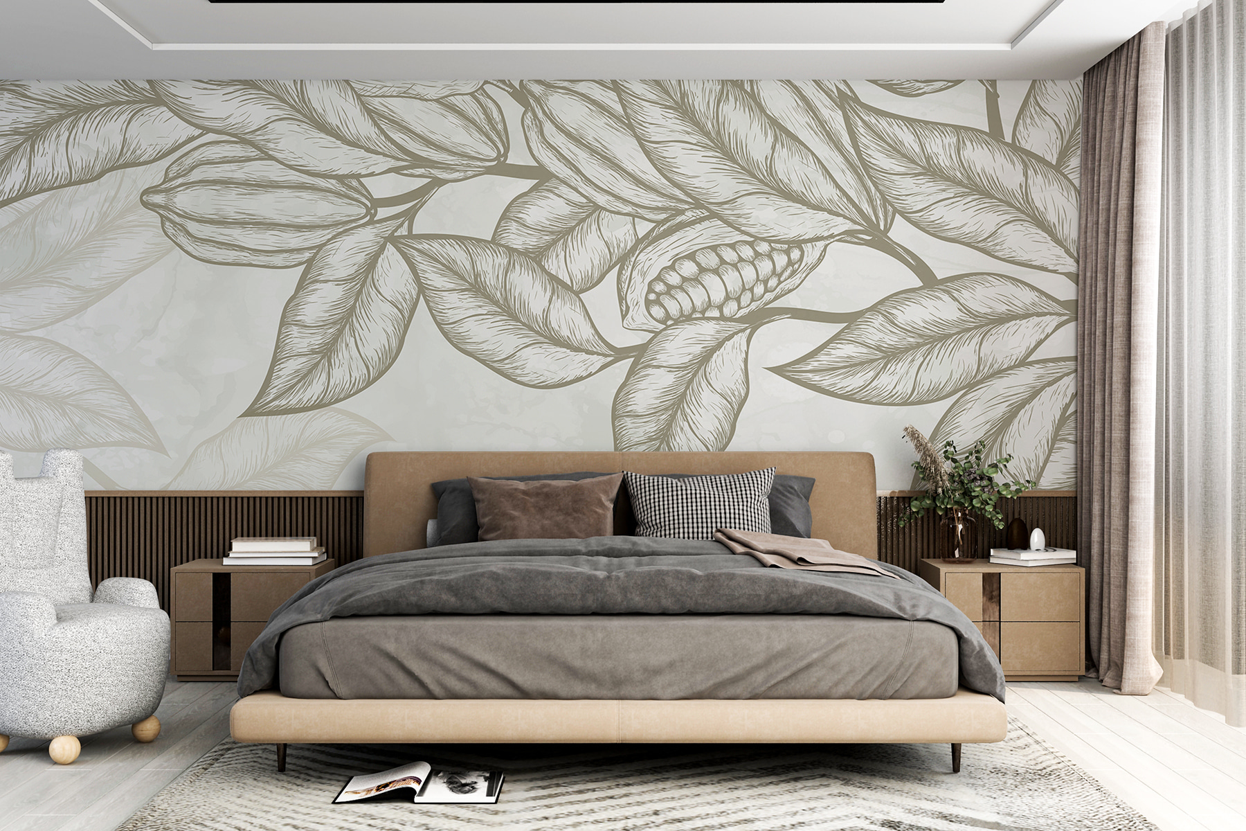 Predstavte si toto: vojdete do svojej obývačky a BUM! privíta vás svieži list a fazuľa “nástennej maľby”. Je to ako váš vlastný tropický únik. Naozaj, kto potrebuje dovolenku, keď je vaša stena mini džungľou? Dizajn je taký živý, že budete napoly očakávať, že tie listy začnú šuchotať alebo fazuľky vyskočia. Je to ako mať kúsok pokojnej prírody priamo tam, bez hmyzu a vlhkosti. Táto nástenná maľba je vaším tipom, ako do interiéru vniesť kúsok vonkajšieho prostredia, a pritom si zachovať štýl a útulnosť.
