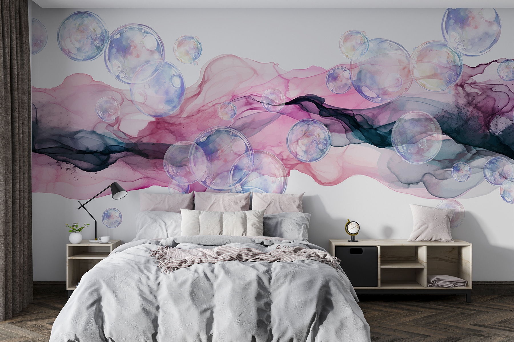 Predstavte si zhmotnený sen – táto nástenná maľba je čistá mágia. Tieto bublinky sa ako jemný šepot vznášajú v očarujúcom tanci ružovej a fialovej. Mali ste niekedy pocit, že ste vstúpili do akvarelovej maľby? Tu máte príležitosť. Vaša izba sa môže stať upokojujúcou oázou alebo rozmarným vesmírom, kde kreativita len tak plynie. Pocíťte, ako sa na vás valí pokoj, keď svetlo dopadá na tieto jemné odtiene a vrhá jemné odlesky. Ideálne pre každého, kto verí v krásu predstavivosti – a kto nepotrebuje vo svojom živote trochu viac rozmarnosti?