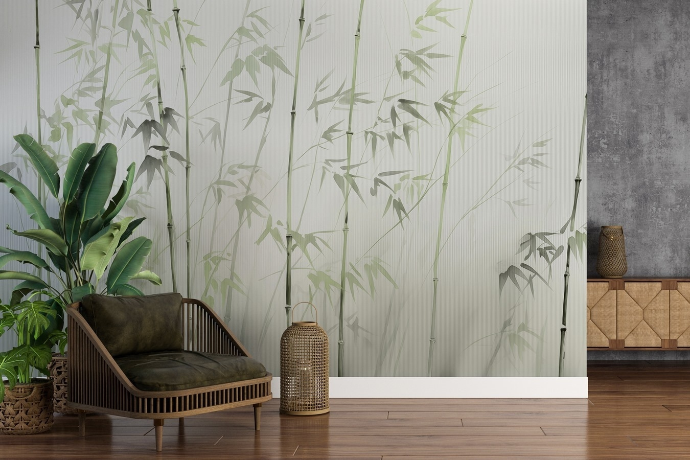 Premeňte svoj priestor na pokojnú oázu s touto krásnou nástennou maľbou bambusových stoniek tancujúcich s jemnými listami. Predstavte si, že vstúpite do miestnosti, ktorá pripomína pokojnú japonskú záhradu, kde sa stres akoby rozplynul. Jemná zeleň a jemné tvary vytvárajú pokojnú atmosféru, takže je ideálna pre útulný čitateľský kútik alebo upokojujúce útočisko v spálni. Je to ako preniesť kúsok prírody do interiéru – bez špiny! Každý pohľad zapaľuje upokojujúci pocit a pripomína vám, aby ste spomalili a ocenili krásu okolo. Verte nám, je ťažké neusmievať sa, keď ste obklopení touto krásnou zeleňou!