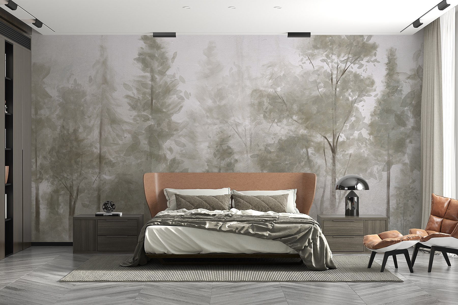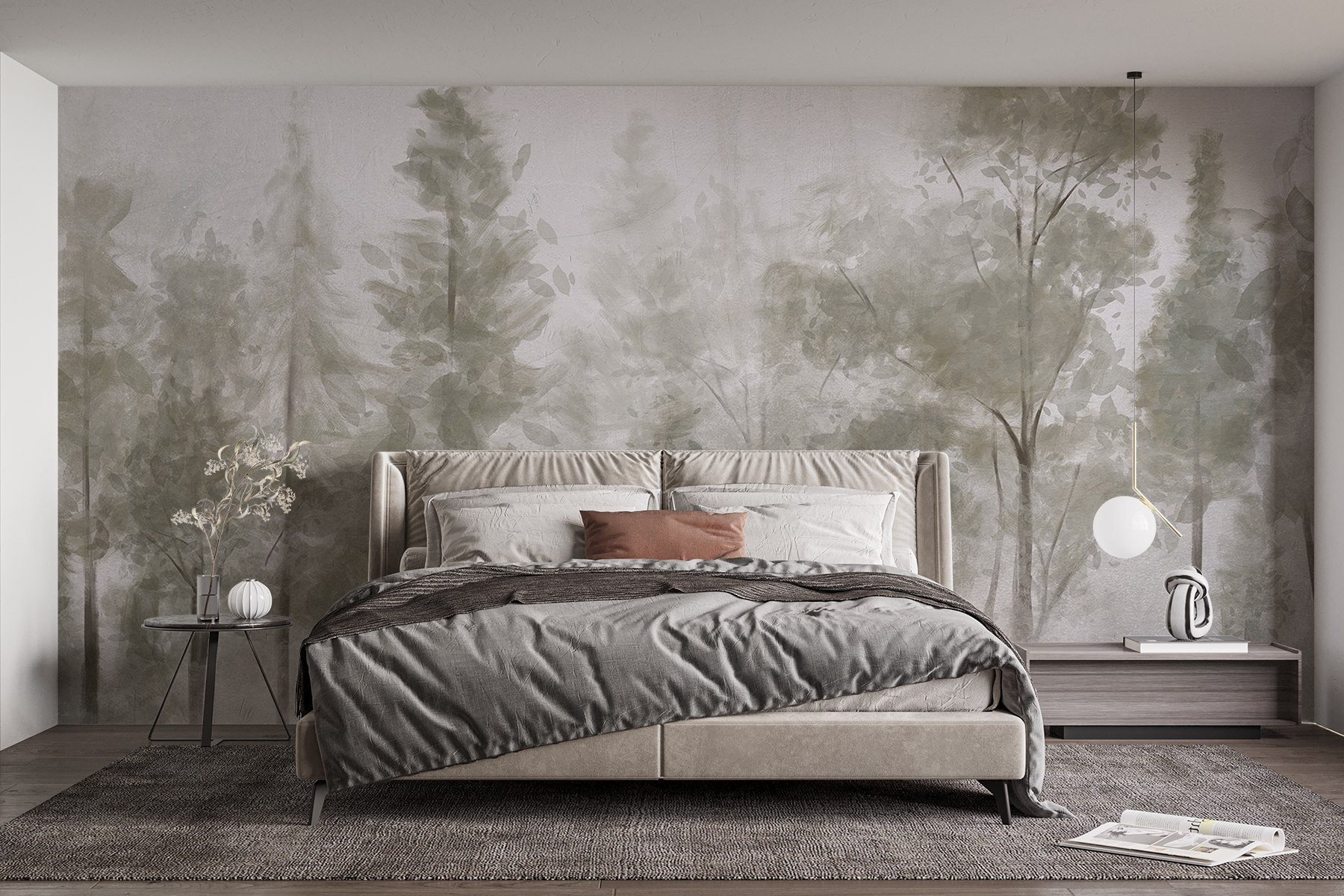 Vstúpte do zasnenej lesnej krajiny s touto úžasnou nástennou maľbou “Skupina stromov v hmle”. Je to ako preniesť pokojný les priamo do vášho domova, bez zablatených topánok a uštipnutí od komárov. Predstavte si, že sa prebúdzate s týmto jemným, hmlistým výhľadom – to je tá správna atmosféra pre útulný kútik alebo upokojujúcu spálňu.