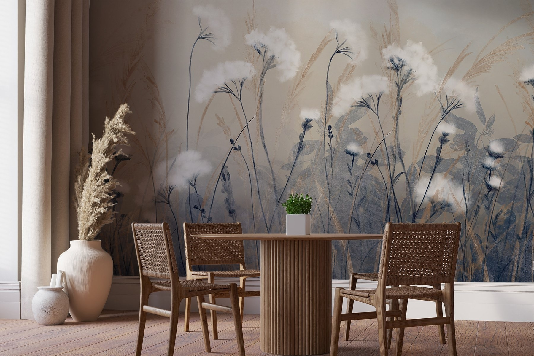 Premeňte svoj priestor pomocou tejto úžasnej nástennej maľby s rozmarnou skupinou kvetov v zasnenom poli. Je to ako priniesť kúsok prírody do interiéru, bez kýchania z peľu! Predstavte si to: prebudíte sa, v ruke držíte kávu a tam sú ony – nežné kvety šepkajúce sladké tóny. Jemné akvarelové odtiene sa nádherne prelínajú a vytvárajú pokojnú atmosféru, ktorá premení každú stenu na pokojný únik. Perfektne sa hodí na oživenie fádnej miestnosti alebo na vytvorenie atmosféry útulného čitateľského kútika. Verte mi, je to malý kúsok pokoja, ktorý vám vyčarí úsmev na tvári zakaždým, keď pôjdete okolo!
