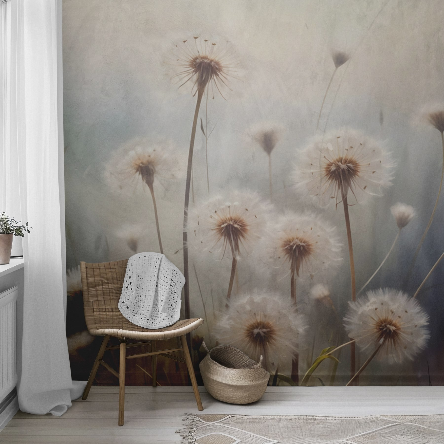 Premeňte akúkoľvek miestnosť na pokojné útočisko pomocou tejto očarujúcej nástennej maľby s jemnými bielymi kvitnúcimi púpavami. Predstavte si, že vstúpite do jemného vánku, kde púpavy tancujú a kolíšu sa – poetické, však? Tieto jemné, nadýchané kvety dokážu rozjasniť priestor a takmer šepkajú tajomstvá prírody. Táto nástenná maľba je ideálna do útulného čitateľského kútika alebo upokojujúcej spálne a vytvára príjemnú atmosféru, ktorá pôsobí sviežo a pokojne. Či už snívate alebo popíjate čaj, je to ako mať v interiéri kúsok prírody. Navyše, kto by nemal rád púpavy? Sú to dokonalé nedochôdčatá, ktoré sa jedným jemným pofúknutím premenia na rozkošné želania. Tak prečo sa nenechať touto krásnou nástennou maľbou preniesť niekam na čarovné miesto?